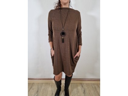 Dámské úpletové elegantní šaty jsou hřejivé, strečové a dokonale přizpůsobivé. Mají praktické kapsičky a vypadají skvěle i s páskem – ideální pro každodenní nošení.