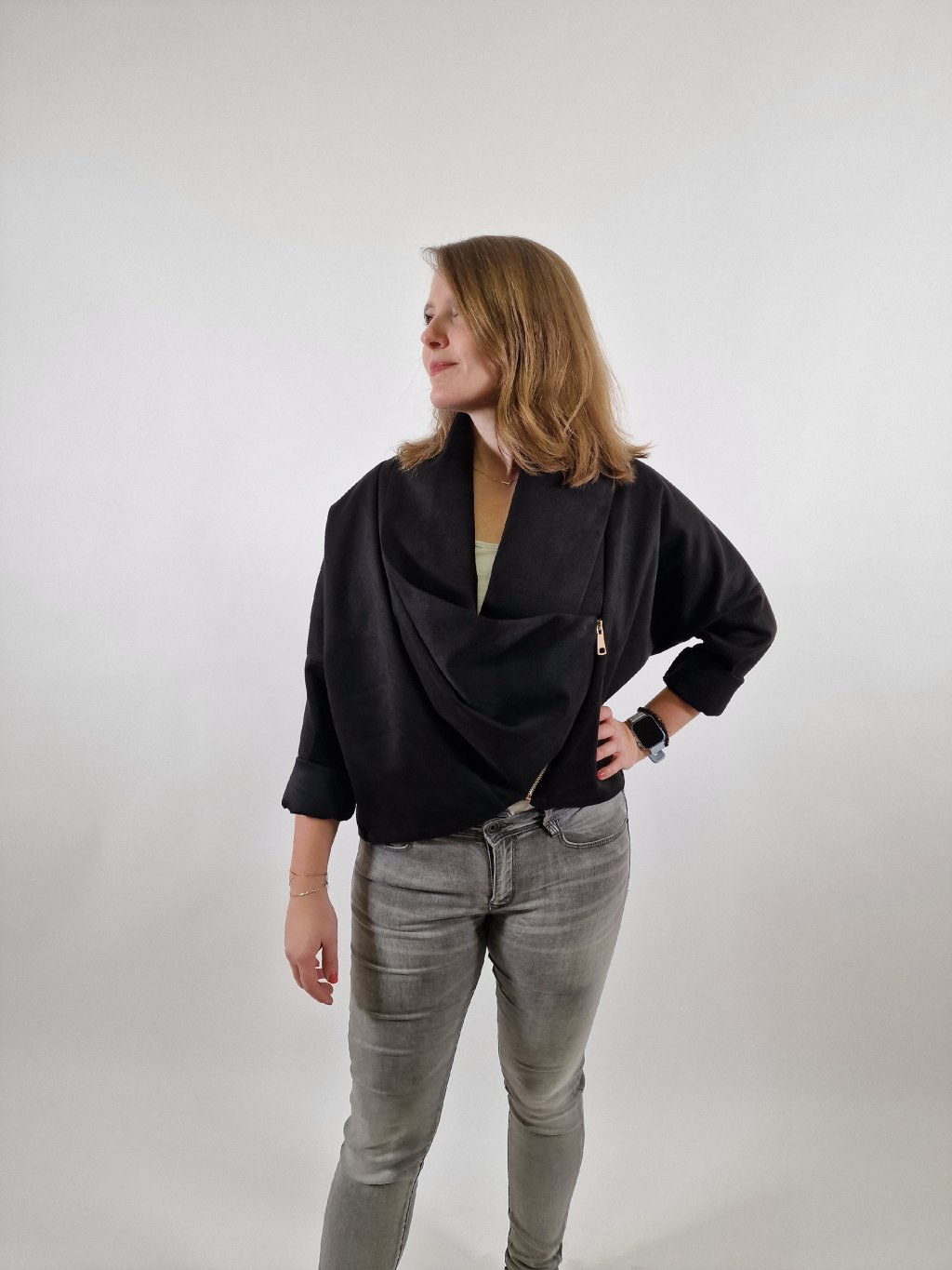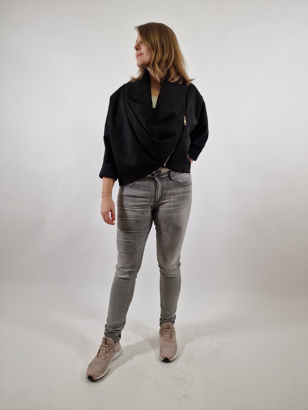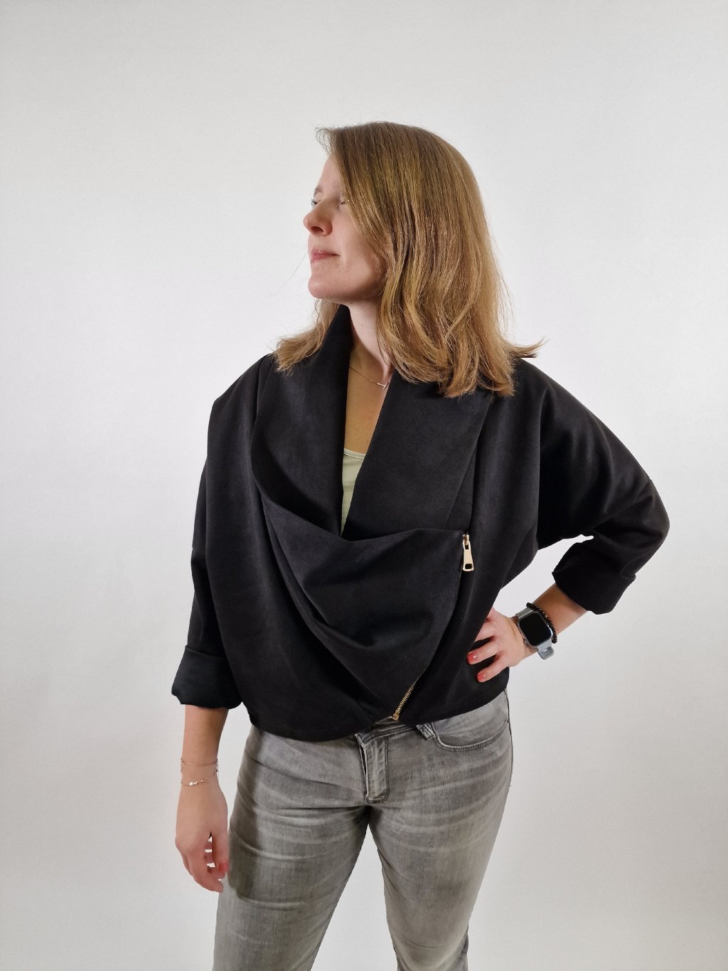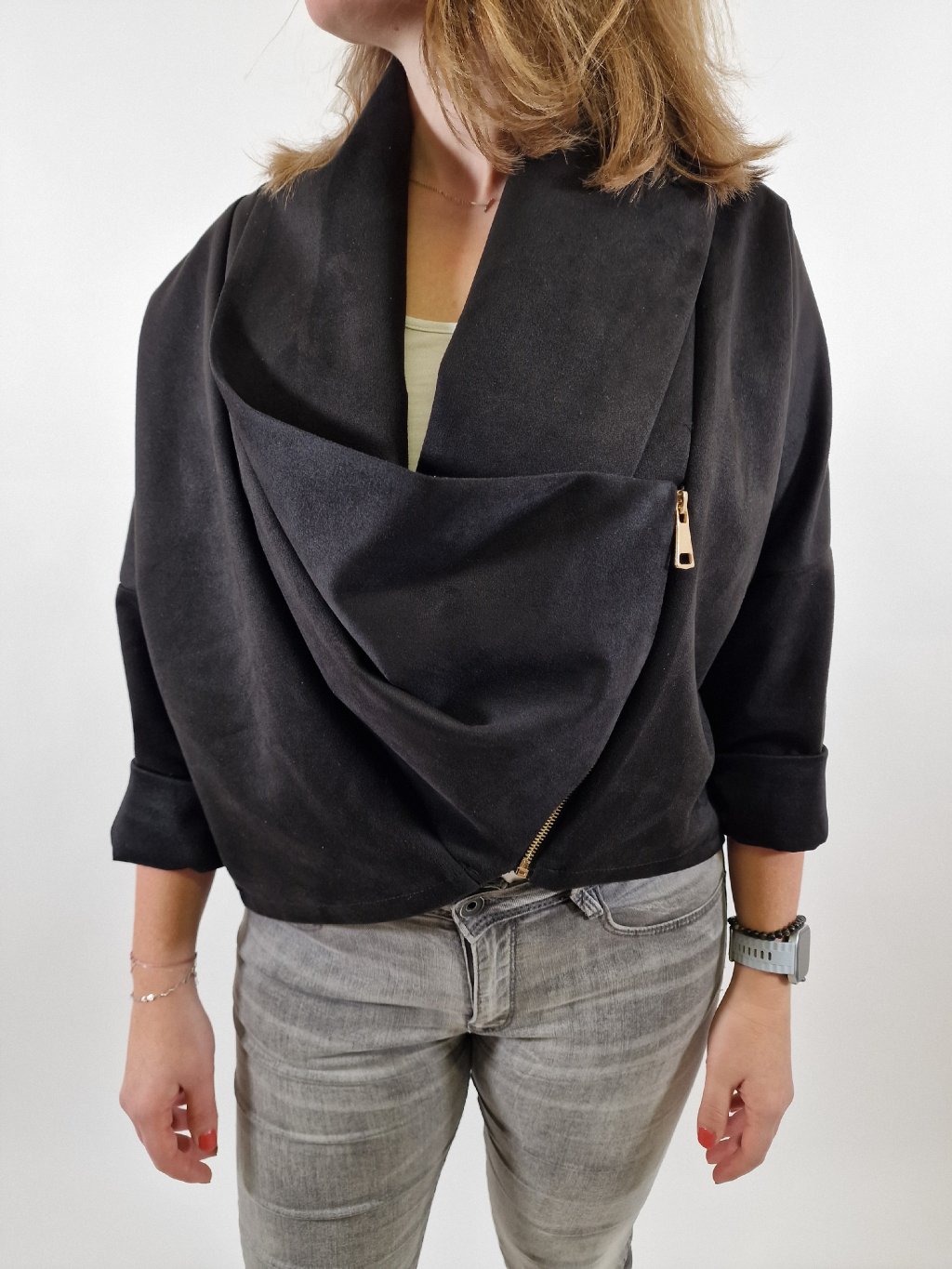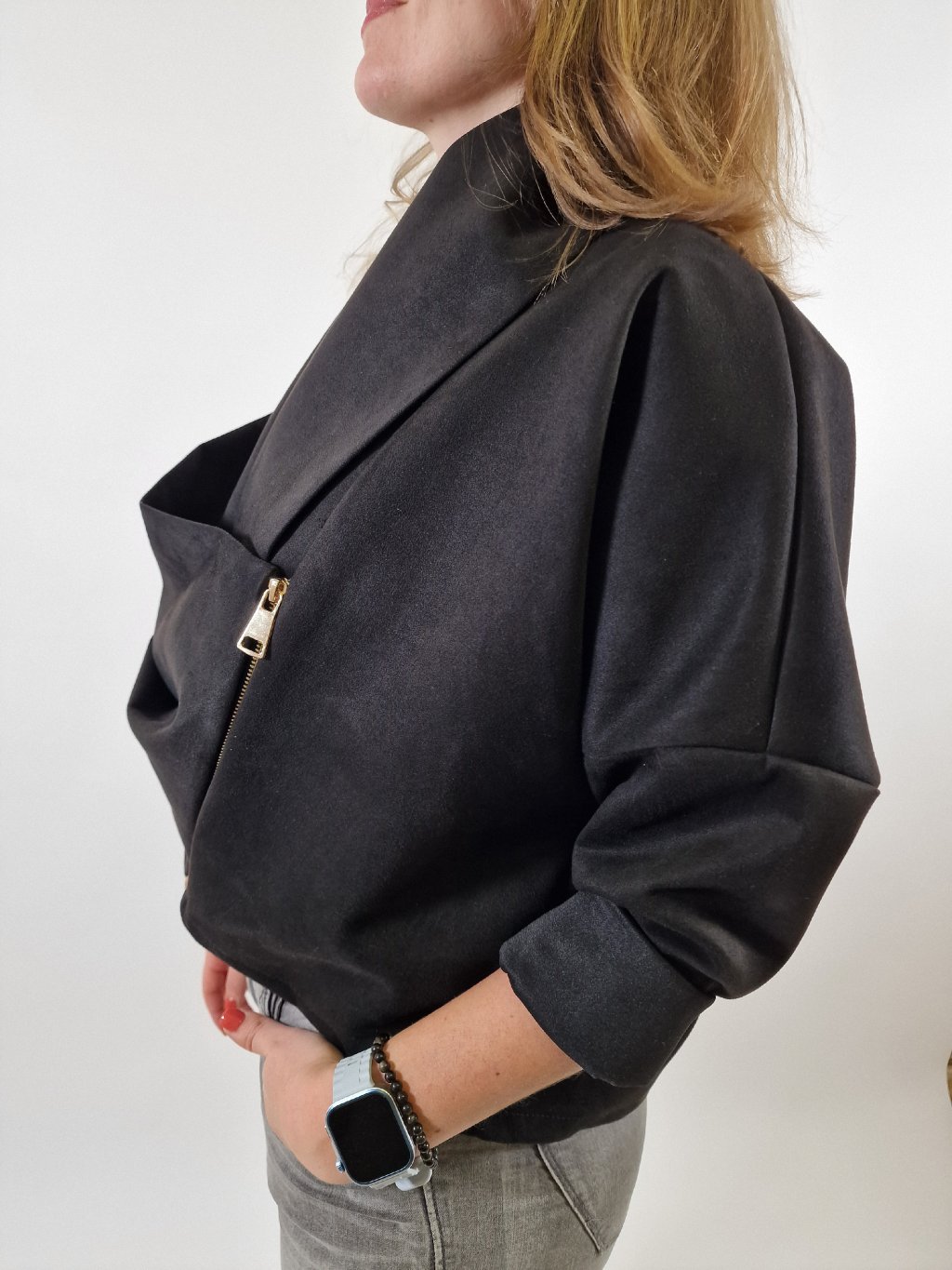 Elegantní dámská bunda blejzr s vodou v univerzálním oversize střihu. Zapínání na zip dodává moderní vzhled, materiál s podílem elastanu zajišťuje pohodlí a volnost pohybu. Skvělá volba k elegantním kalhotám i džínám pro formální i casual outfit.