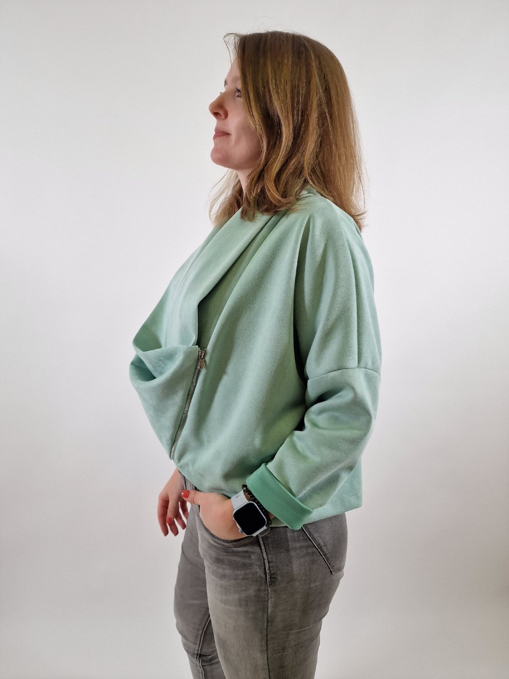 Elegantní dámská bunda blejzr s vodou v univerzálním oversize střihu. Zapínání na zip dodává moderní vzhled, materiál s podílem elastanu zajišťuje pohodlí a volnost pohybu. Skvělá volba k elegantním kalhotám i džínám pro formální i casual outfit.