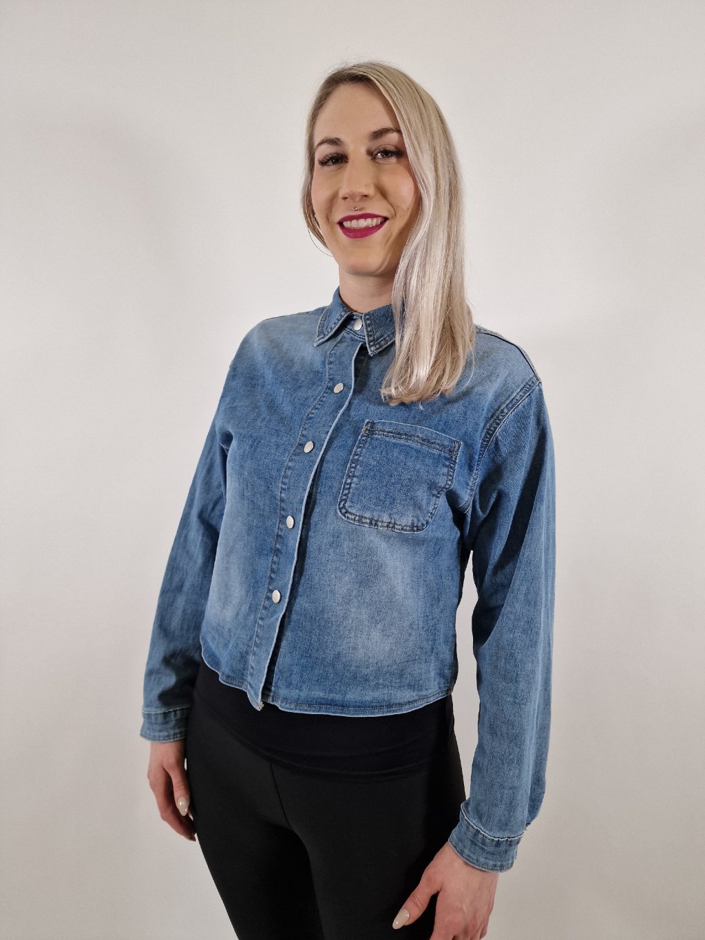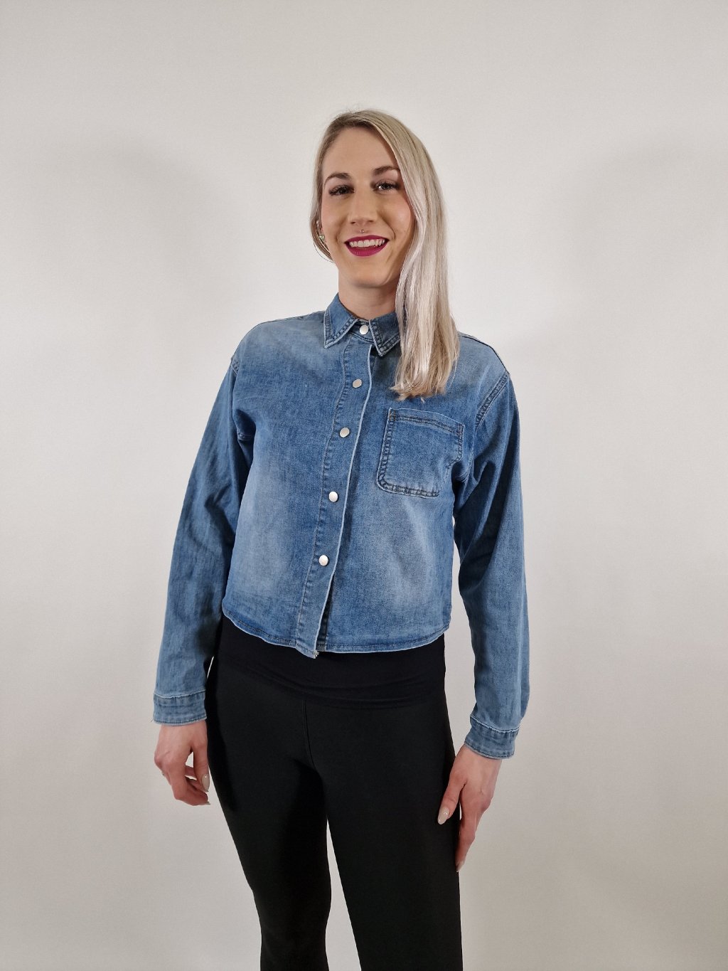 Pohodlná dámská riflová košile z tenkého a strečového materiálu ve volnějším oversize střihu. Zapínání na druky dodává moderní vzhled a zajišťuje snadné oblékání. Ideální kousek pro vrstvení, nošení samostatně i jako lehká košile přes tričko či šaty.