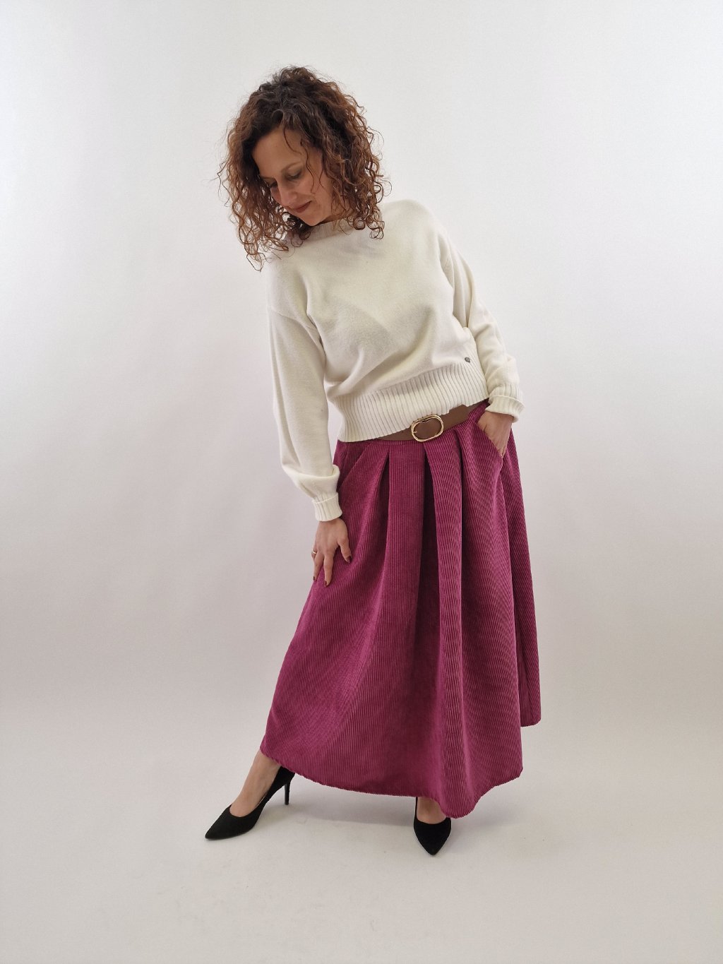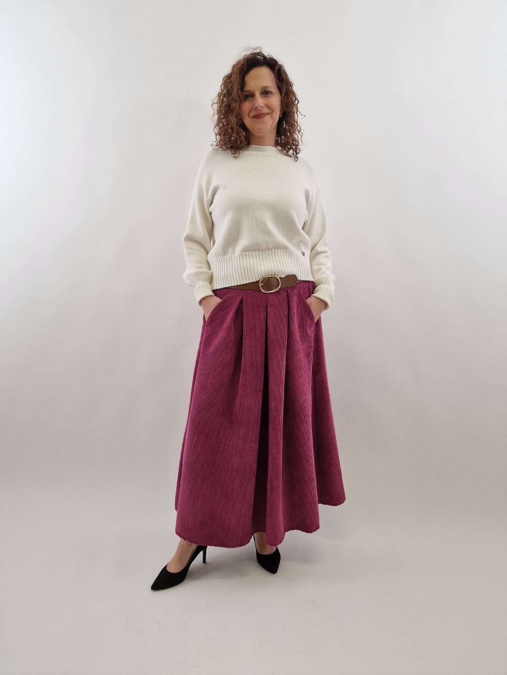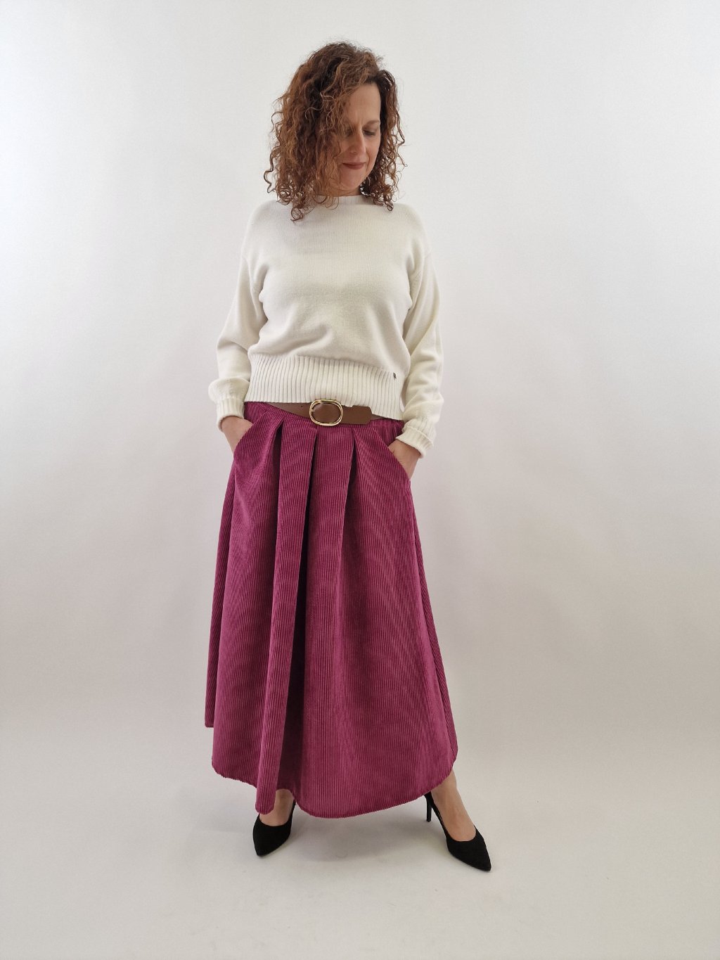 Elegantní manšestrová sukně Thodami – ideální pro pohodlné a stylové outfity do práce i na volný čas.