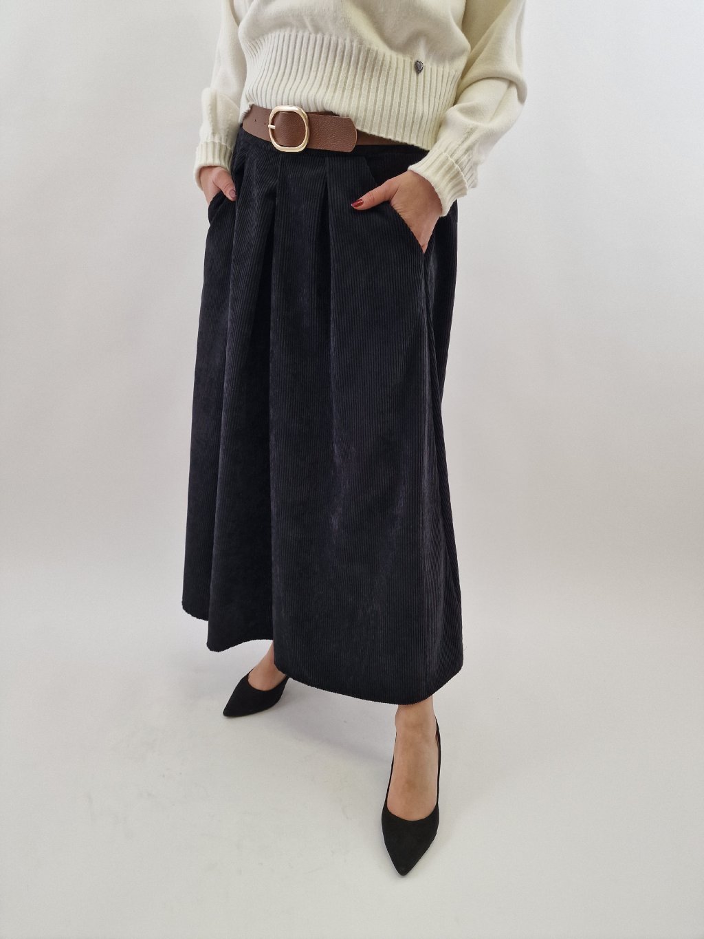 Elegantní manšestrová sukně Thodami – ideální pro pohodlné a stylové outfity do práce i na volný čas.