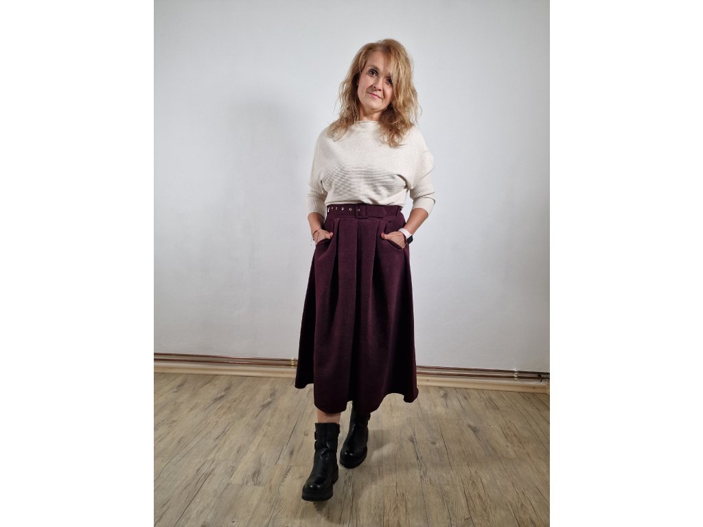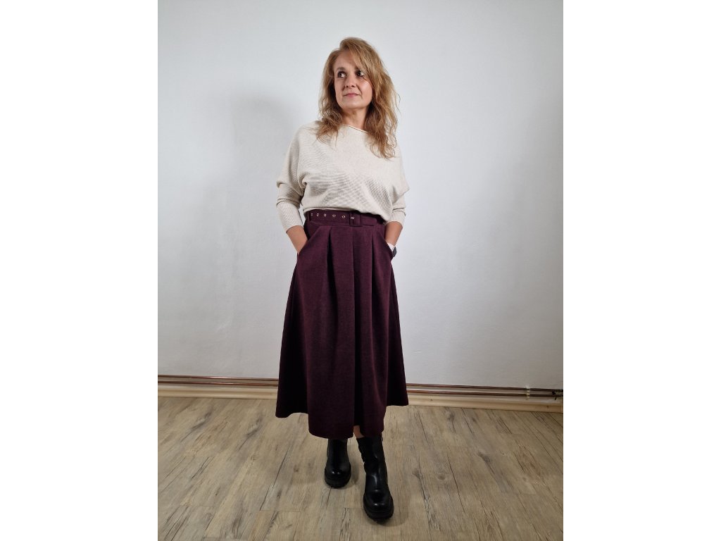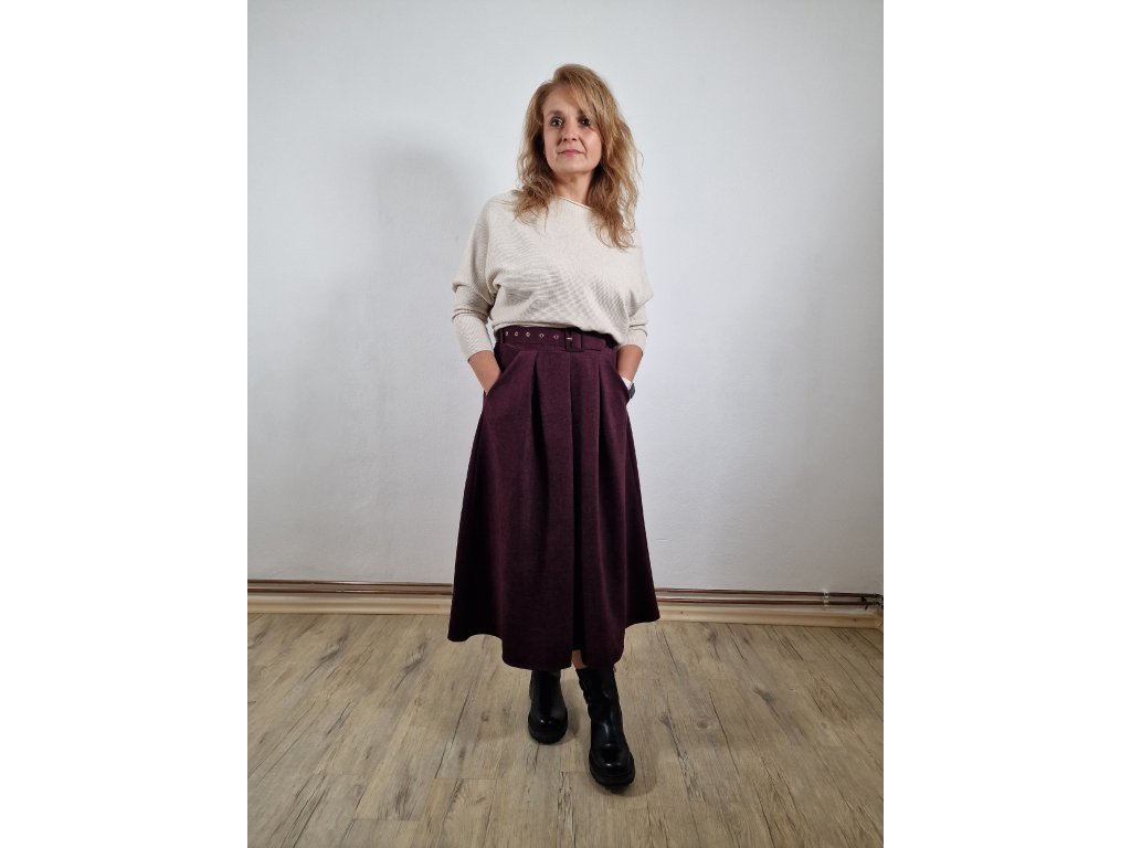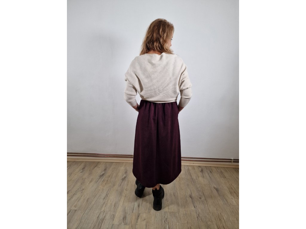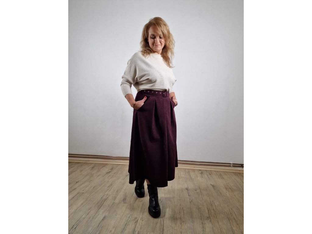 Stylový střih a příjemný teplejší materiál činí tuto maxi sukni ideální volbou pro podzimní a zimní outfity. Skvěle vynikne s kotníkovými botami a krátkým svetrem.