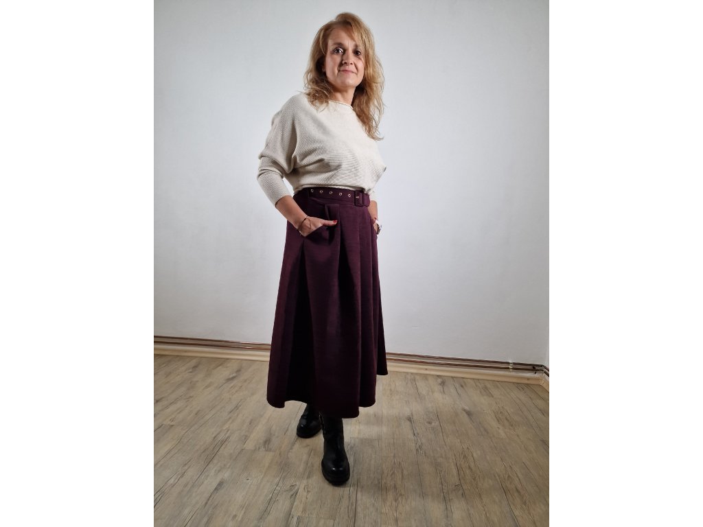 Dámská maxi dlouhá sukně Italy spojuje eleganci s komfortem. Vyrobena z teplejšího materiálu složeného z 81% žinylky, 14% rayonu a 5% elastanu, nabízí příjemný dotek i lehkou pružnost. Sukně má pásek, který krásně zvýrazňuje pas, a praktické kapsy pro každodenní využití. Zadní část pasu je ve stažení, což umožňuje pohodlné přizpůsobení postavě. Díky univerzální velikosti 38–42 se snadno kombinuje s elegantní košilí či svetrem a hodí se pro chladnější dny.