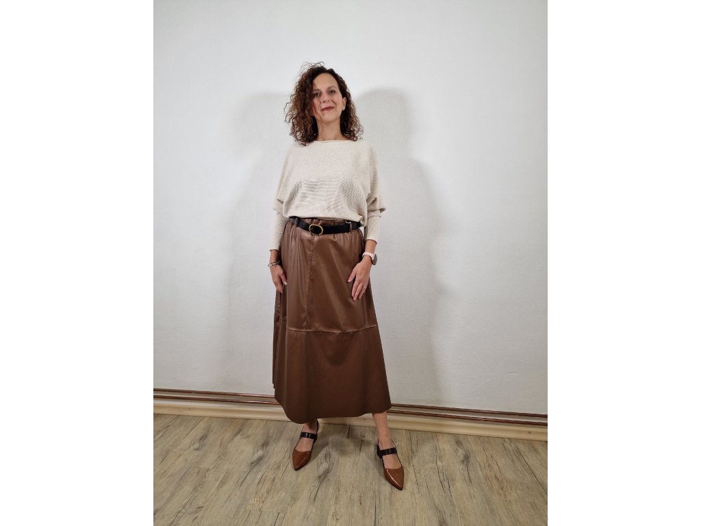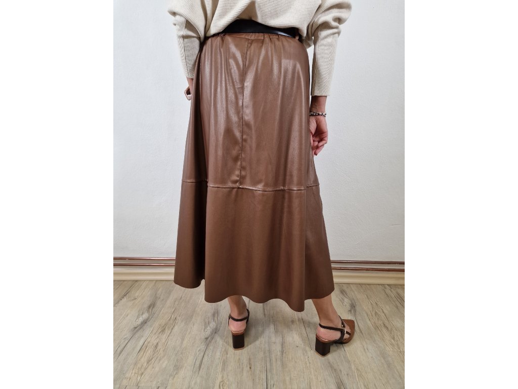 Dámská maxi koženková sukně HG s páskem je elegantní a moderní kousek. Áčkový střih, elastický pas a stylový materiál dodají každému outfitu výrazný vzhled.