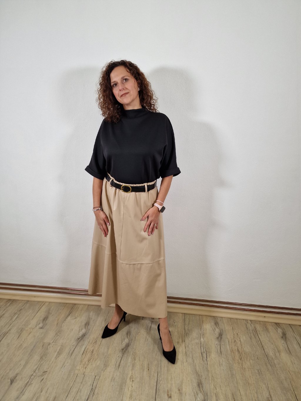 Stylová koženková sukně HG je ideální volbou pro podzimní a zimní outfity. Skvěle se kombinuje s rolákem, svetrem i elegantní košilí.