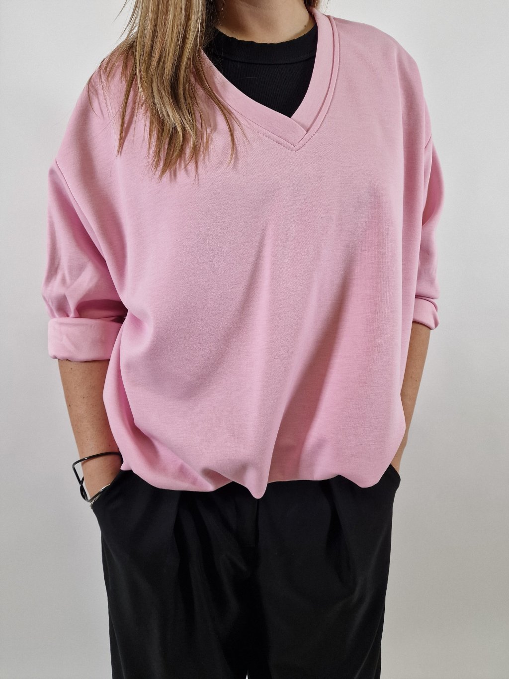 Stylová dámská mikina ve volnějším oversize střihu z velmi příjemného a strečového materiálu. Přední strana je efektně podkasaná, což dodává mikině moderní vzhled. Skvělá volba pro pohodlné každodenní nošení – k džínům, legínám i sportovně elegantním kalhotám.