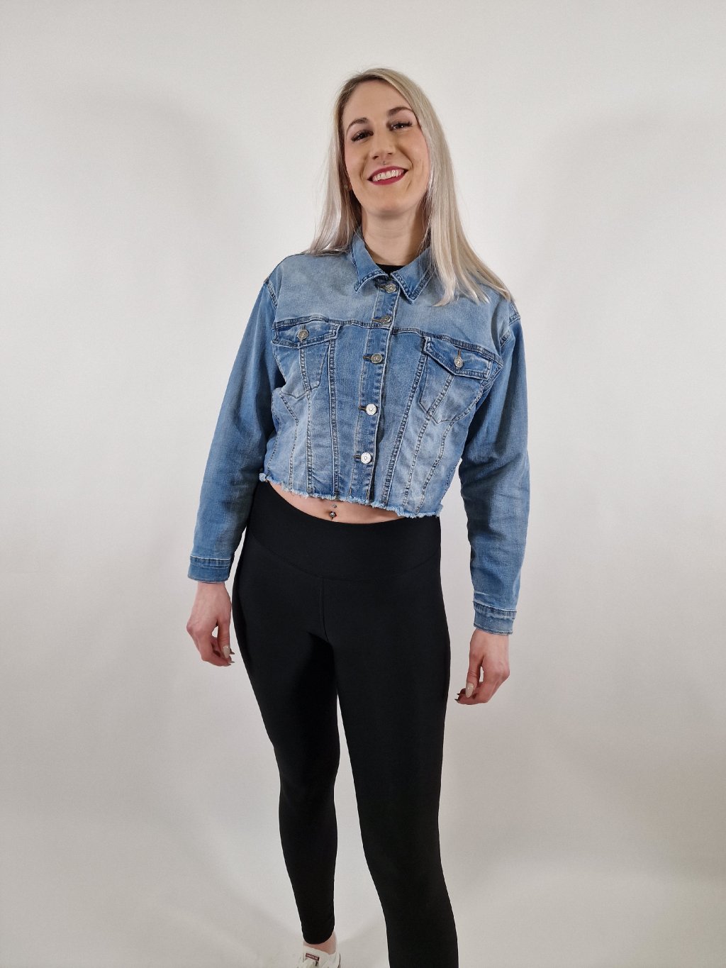 Lehká dámská denim bunda ve volnějším oversize střihu, která je ideální na jaro a léto. Díky strečovému materiálu je velmi pohodlná na nošení a krásně se přizpůsobí postavě. Skvěle se kombinuje se šaty, sukní i kalhotami a dodá outfitu ležérní vzhled.