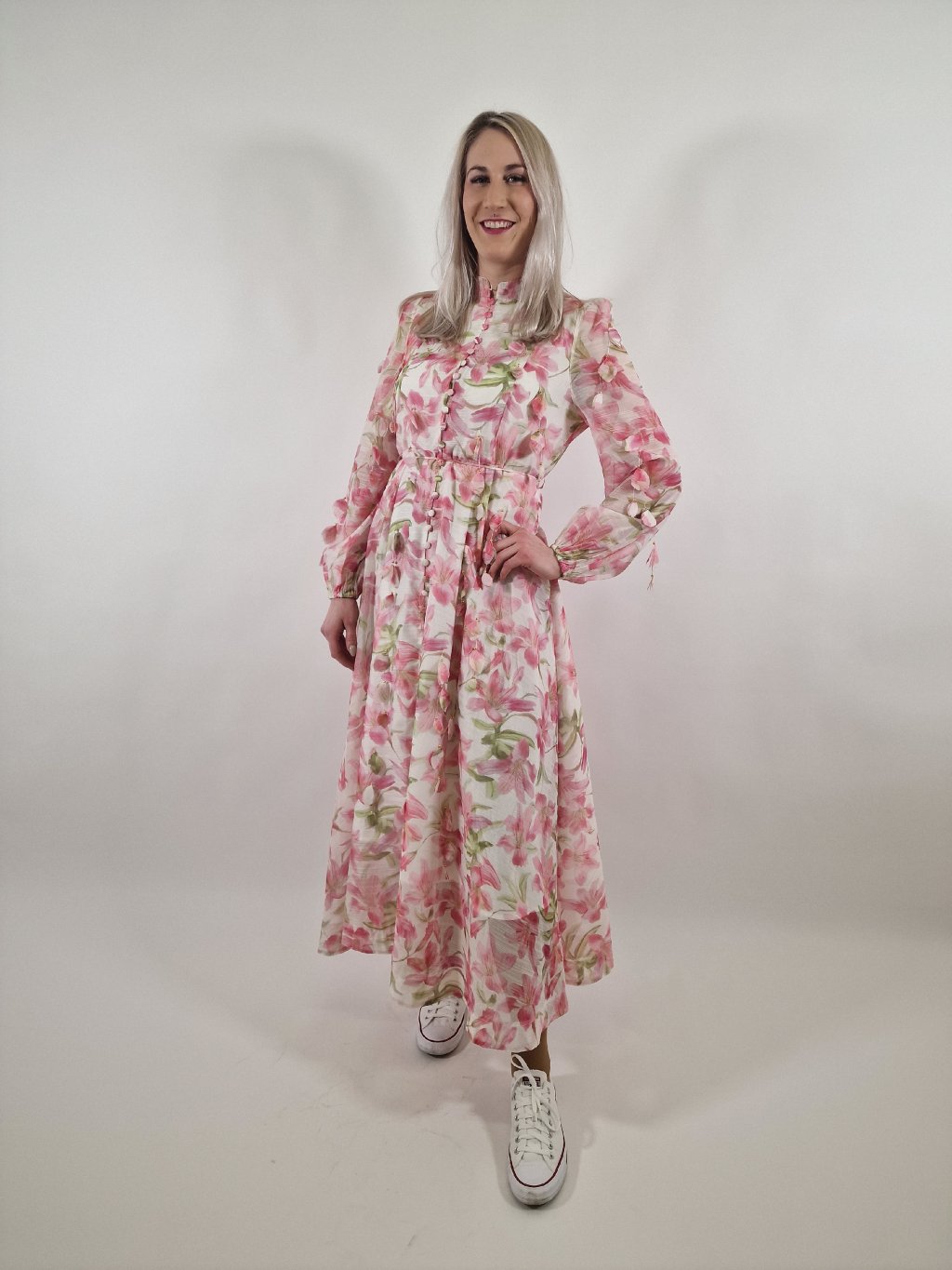 Elegantní dámské boho šaty s květinovým vzorem, které zaujmou svým zdobným provedením. Áčkový střih lichotí postavě, šaty mají pásek pro zvýraznění pasu, praktické kapsy, spodničku a zapínání na zip v zadní části. Ideální volba na slavnostní události i letní dny.