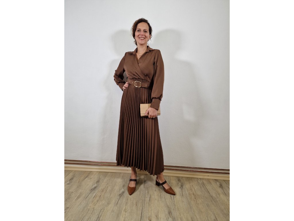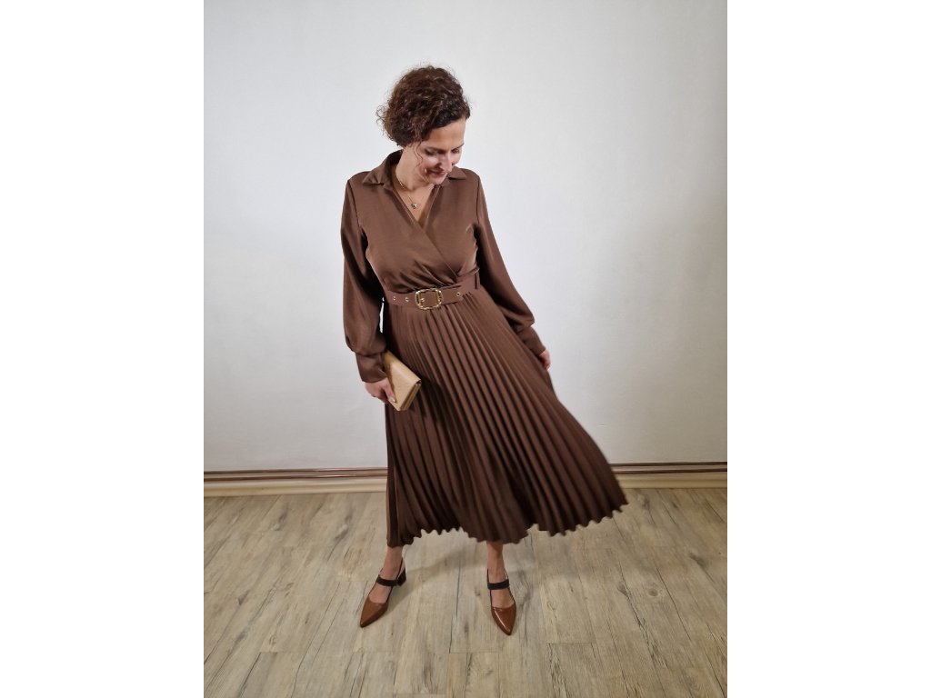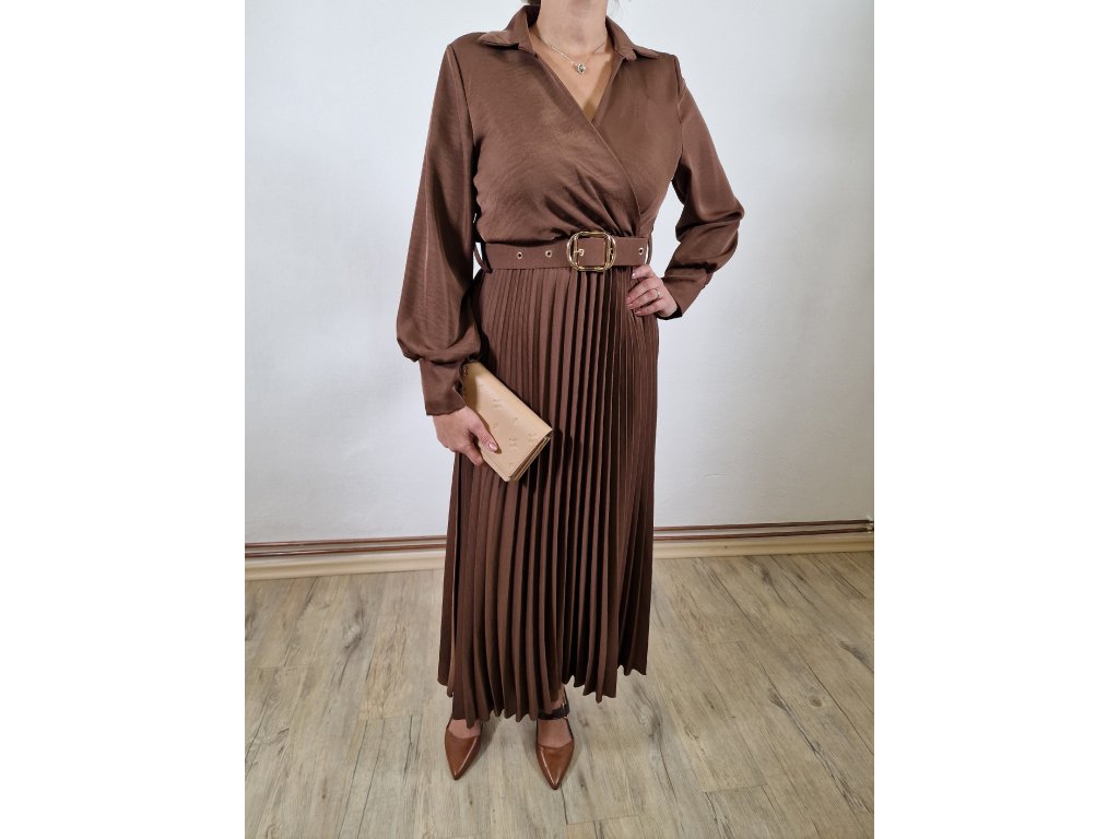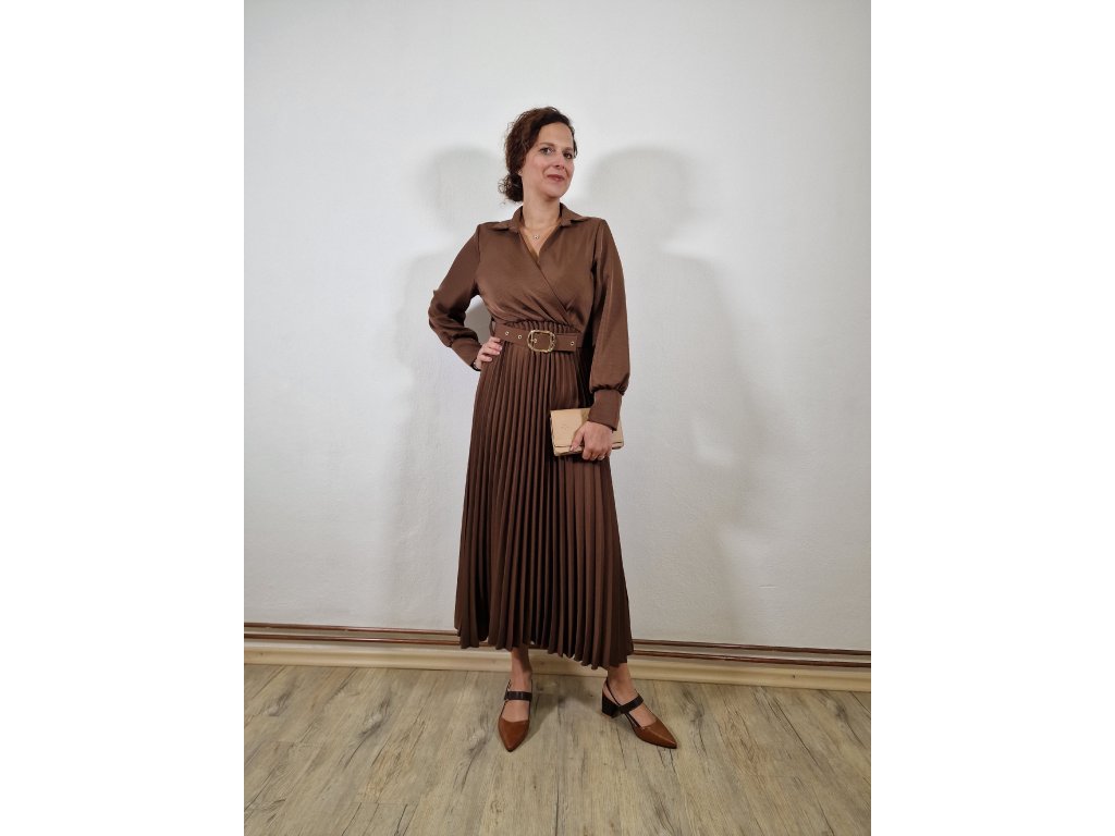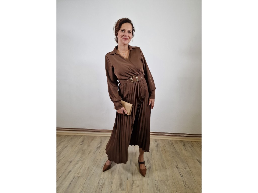 Dámské dlouhé plisé šaty Unique jsou lehké, elegantní a univerzální. Mají páskem zvýrazněný pas a nadčasový střih, ideální pro denní i slavnostní outfity.
