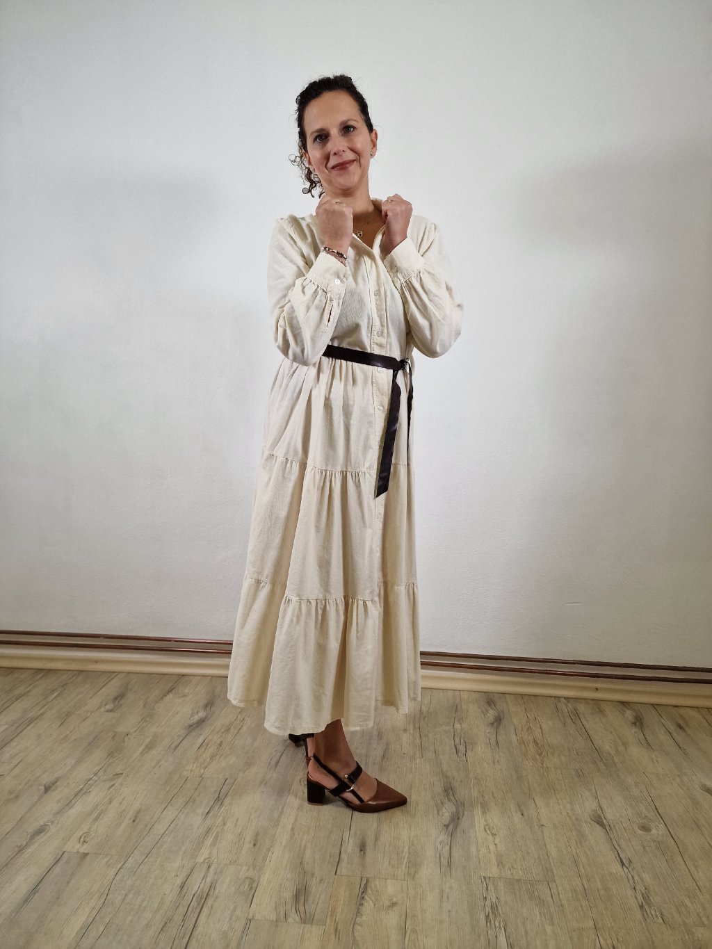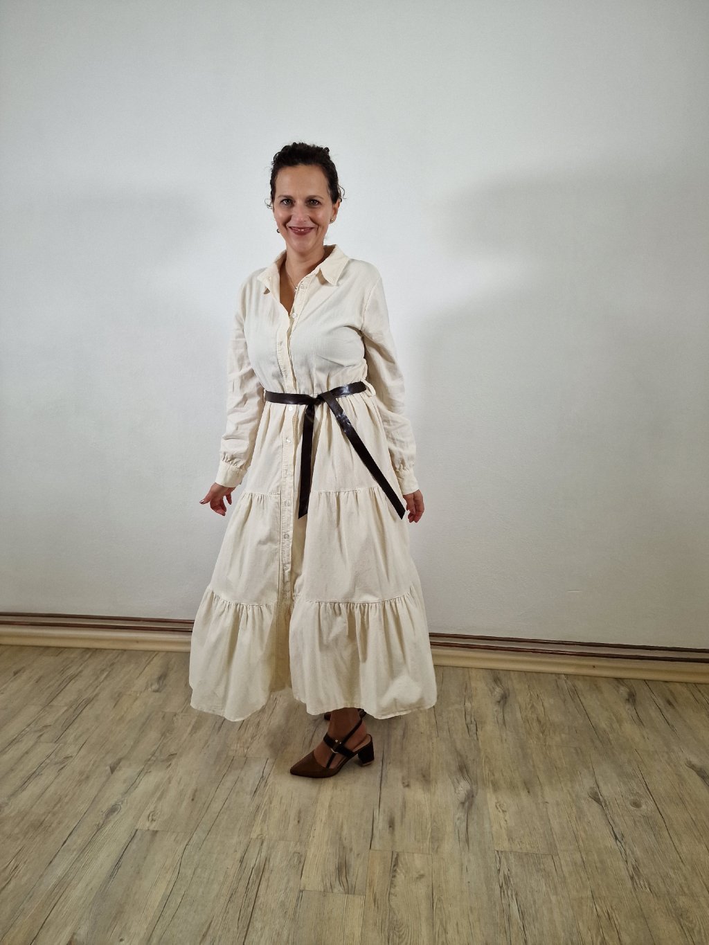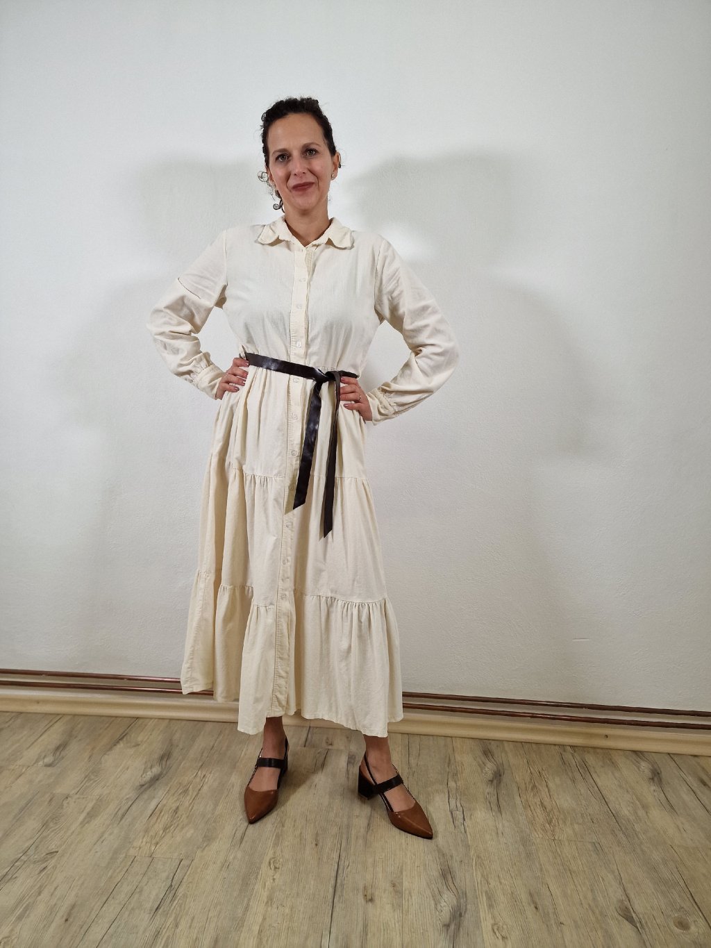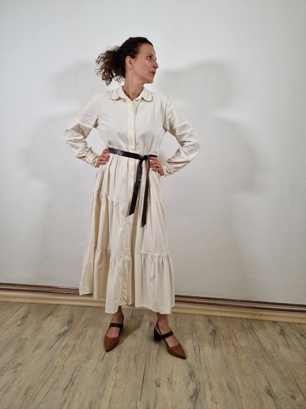 Dámské košilové manšestrové šaty FH3 kombinují pohodlí a nadčasový styl. Vyrobené z kvalitního 100% bavlněného manšestru, jsou lehké, příjemné na nošení a přizpůsobí se postavě díky áčkovému střihu. Šaty mají klasický košilový design, který dodává elegantní a uvolněný vzhled. Univerzální velikost 36–40 zajišťuje, že šaty padnou většině typů postav, délka 120 cm vytváří moderní midi/maxi efekt.