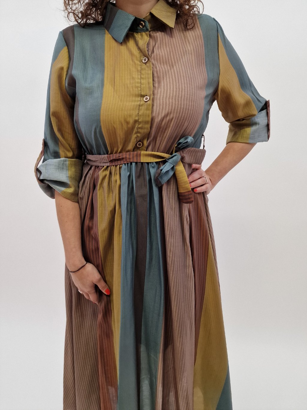 Elegantní a pohodlné dámské košilové šaty Lamiar jsou ideální volbou pro jarní i letní dny. Lehounký materiál s viskózou a tencelem zajišťuje příjemné nošení, zatímco spodnička dodává šatům tvar a komfort. Pas stažený do gumy krásně zvýrazní siluetu a bohatá sukně působí vzdušně a ženským dojmem.