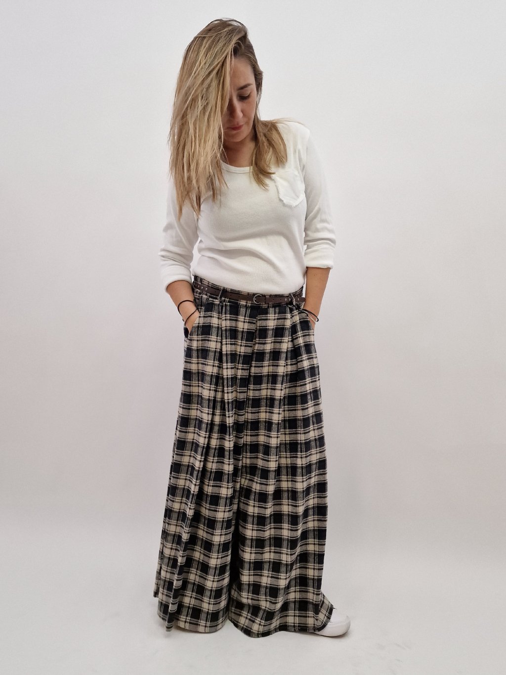 Dámské káro kalhoty kombinují eleganci, pohodlí a teplo – skvělý doplněk pro stylové zimní i podzimní outfity.