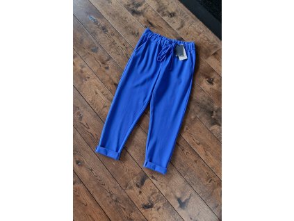 Výrazně modré, hodně strečové- velmi pohodlné a příjemné na tělo, pas v gumě, kapsy Materiál 52% bavlna, 40% nylon, 8% elastan Pas 36-49, délka bez ohrnutí 93 vel 38-40