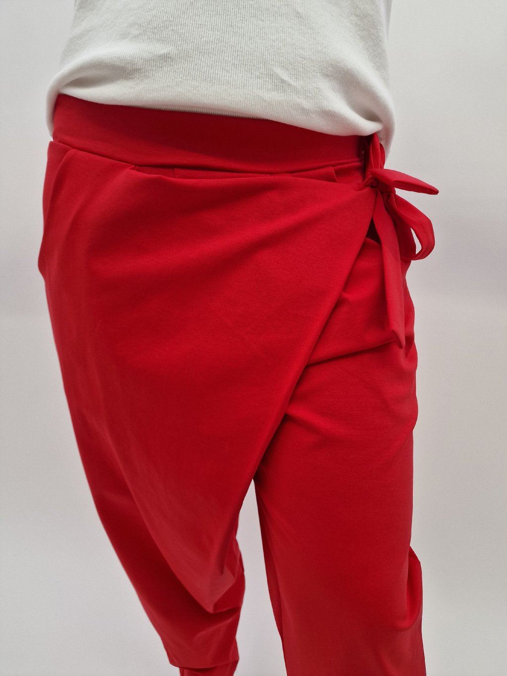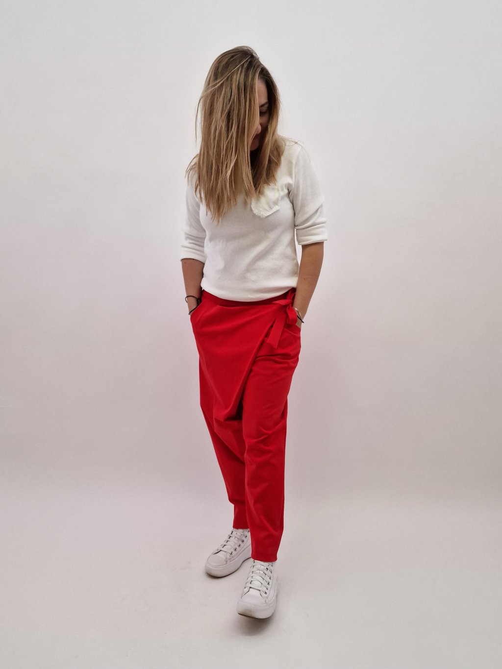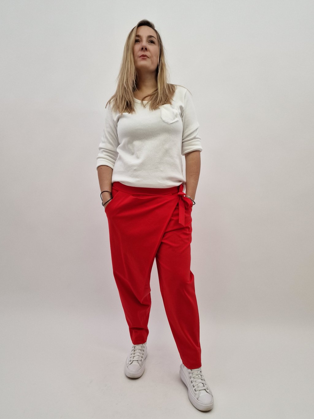 Kalhoty jsou ideální volbou pro každodenní outfit. Díky pružnému materiálu a střihu s uvázáním se snadno kombinují s tričky, svetříky i halenkami.