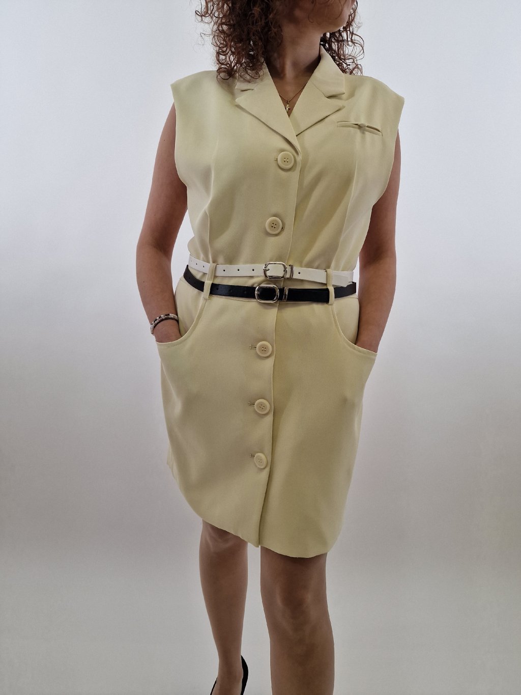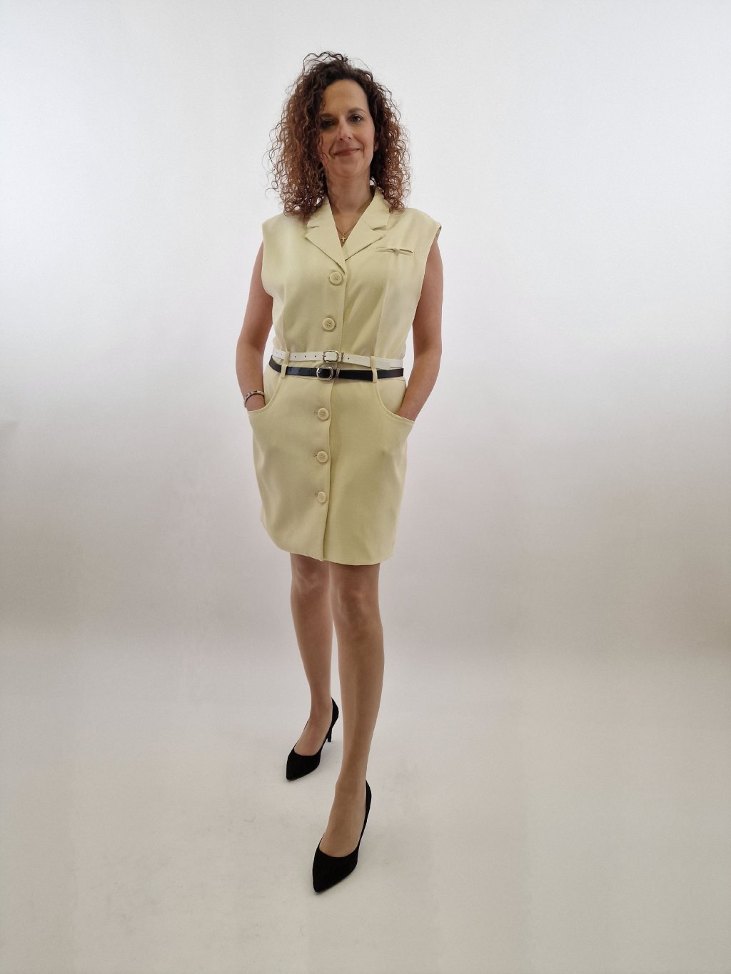 Elegantní dámské kostýmkové šaty s podšívkou, kapsami a páskem pro zvýraznění pasu. Díky příjemnému strečovému materiálu se krásně nosí a jsou vhodné jak do práce, tak i na společenské příležitosti.