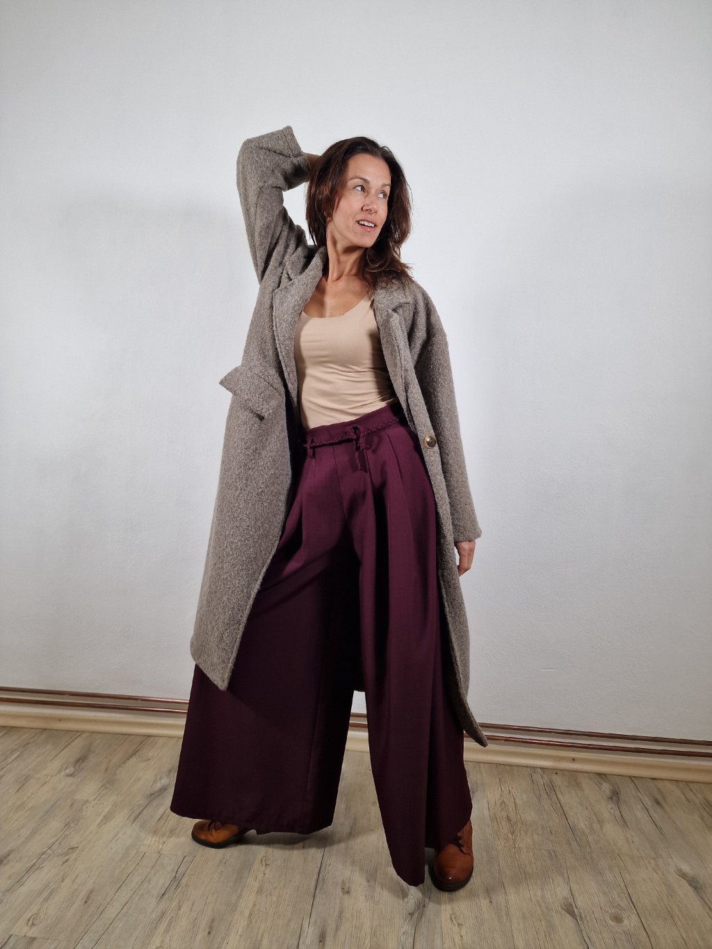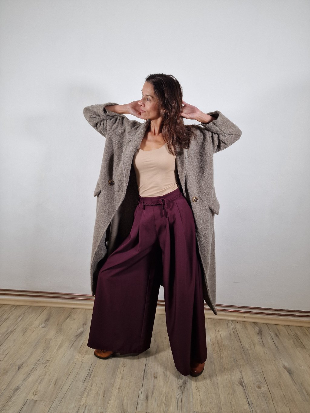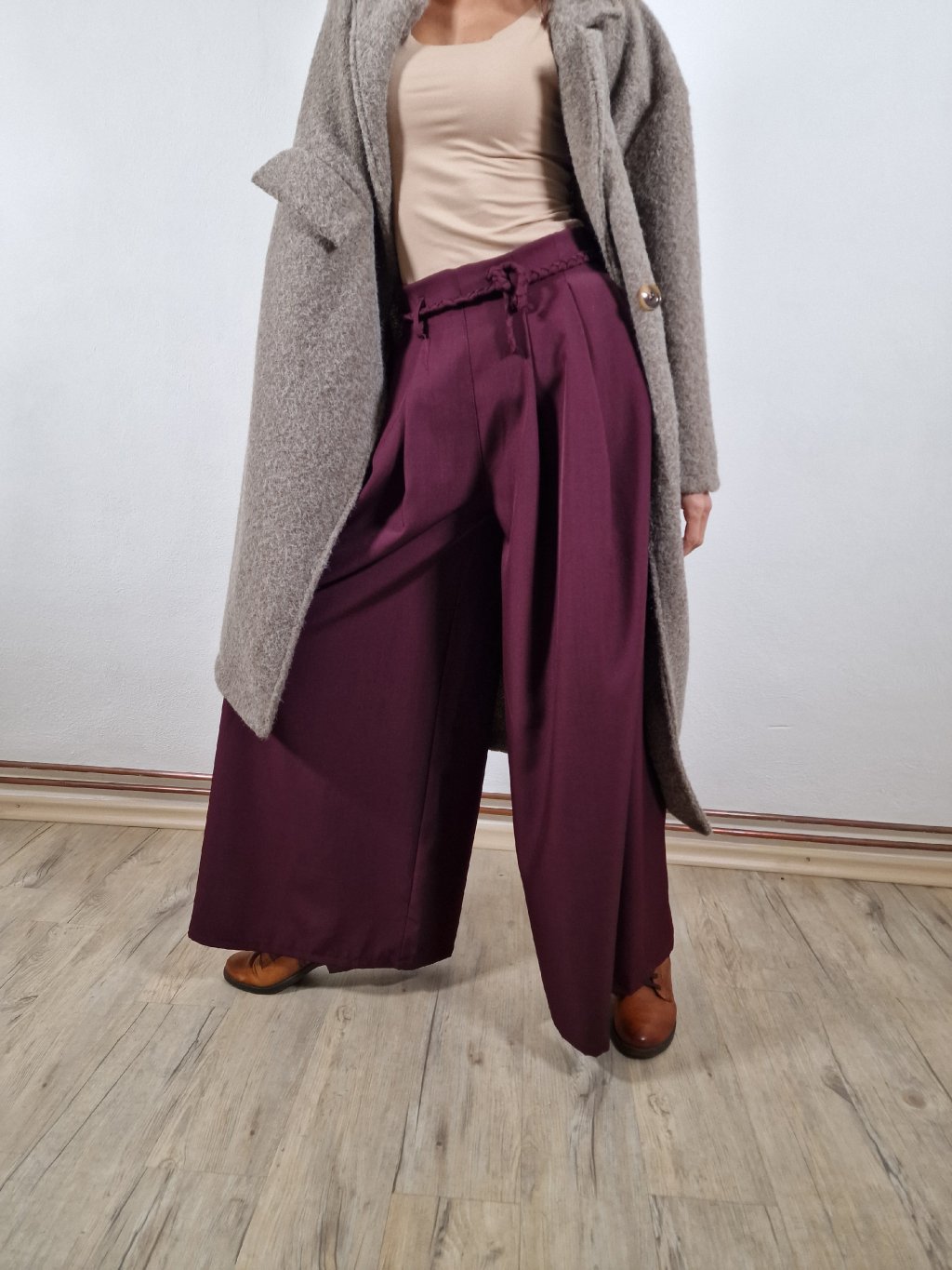 Lehký splývavý materiál a doplňky v podobě pásku dodávají kalhotám ženský a sofistikovaný vzhled. Skvěle se kombinují s elegantní halenkou nebo topem.