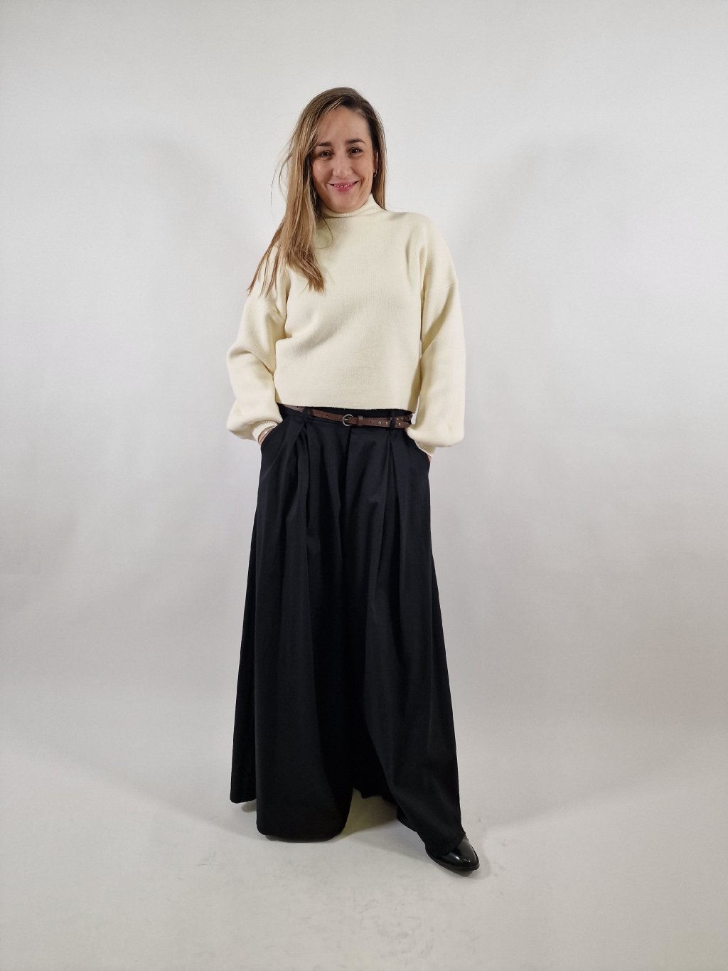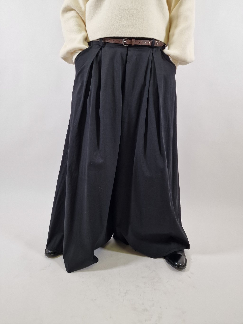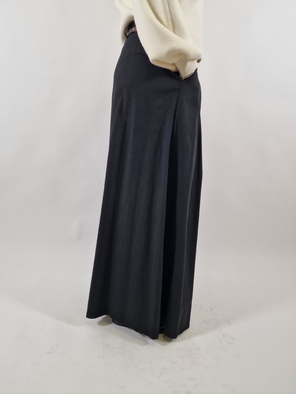 Stylové plátěné maxi kalhoty LEA s širokými nohavicemi, které vytvářejí efekt kalhotové sukně. Mají praktické kapsy a součástí je pásek pro zvýraznění pasu. Zadní část pasu je stažená do gumy, takže se krásně přizpůsobí postavě a zajistí maximální pohodlí při nošení. Ideální volba pro každodenní i elegantnější outfit.