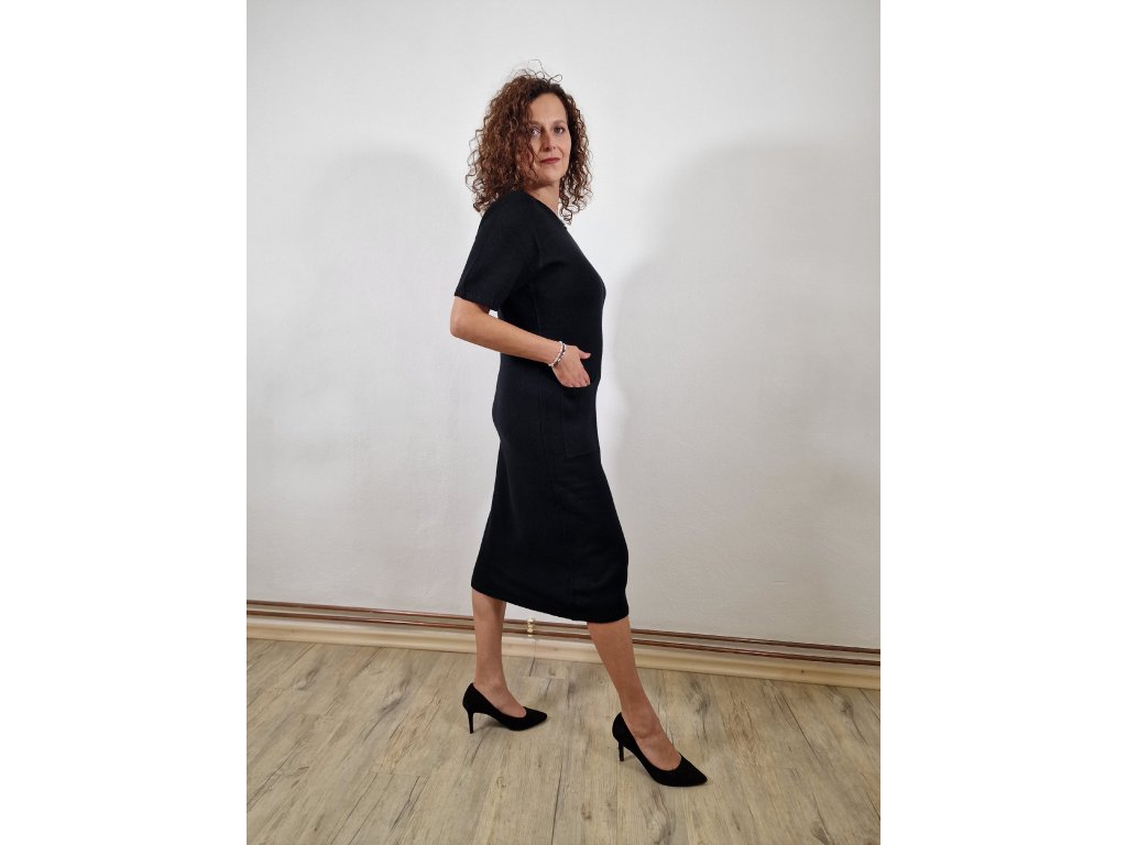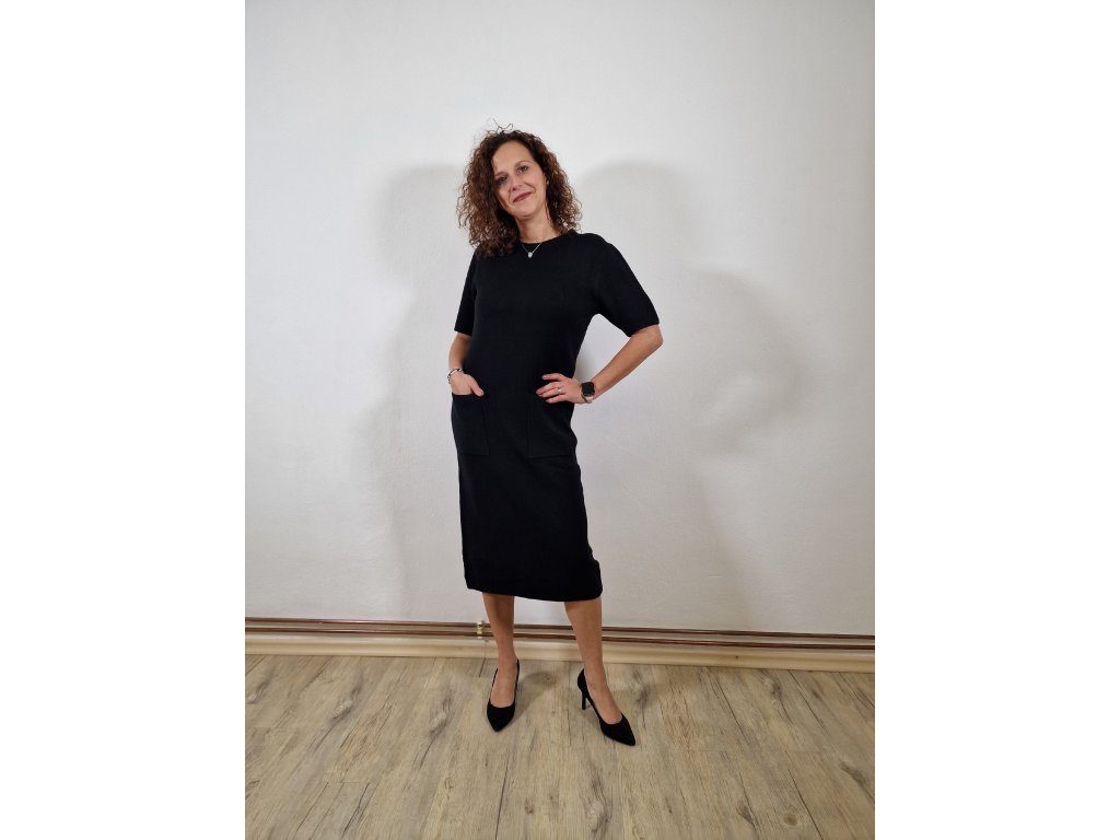 Dámské úpletové elegantní šaty jsou hřejivé, strečové a dokonale přizpůsobivé. Mají praktické kapsičky a vypadají skvěle i s páskem – ideální pro každodenní nošení.