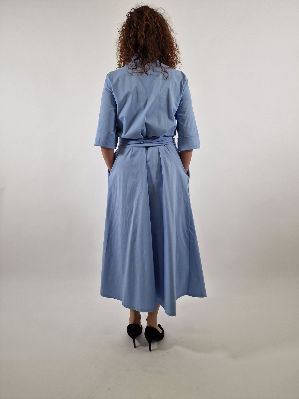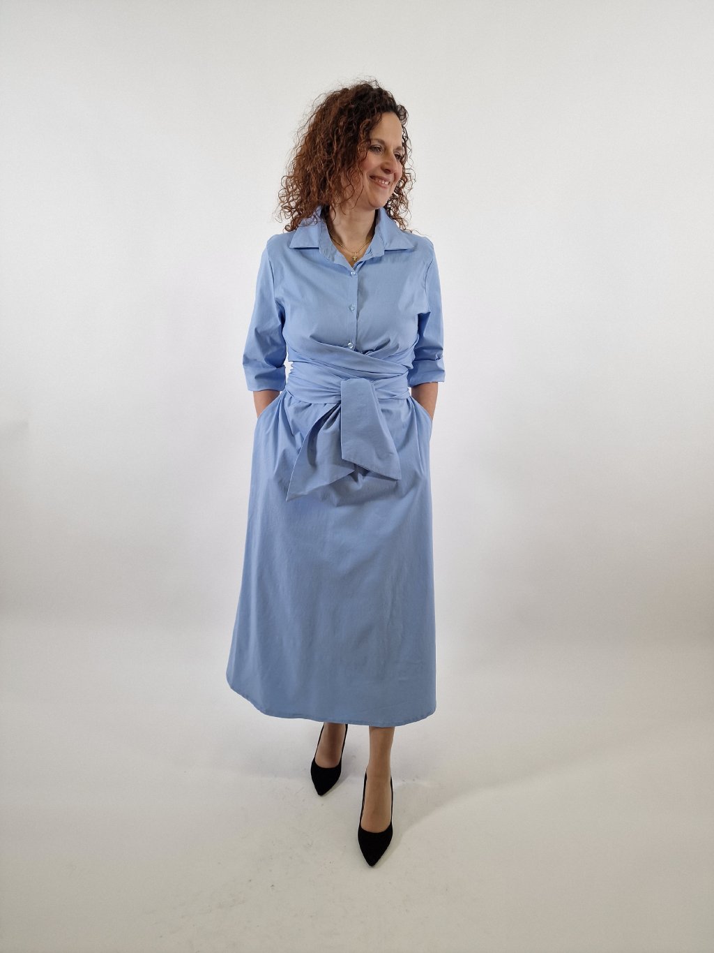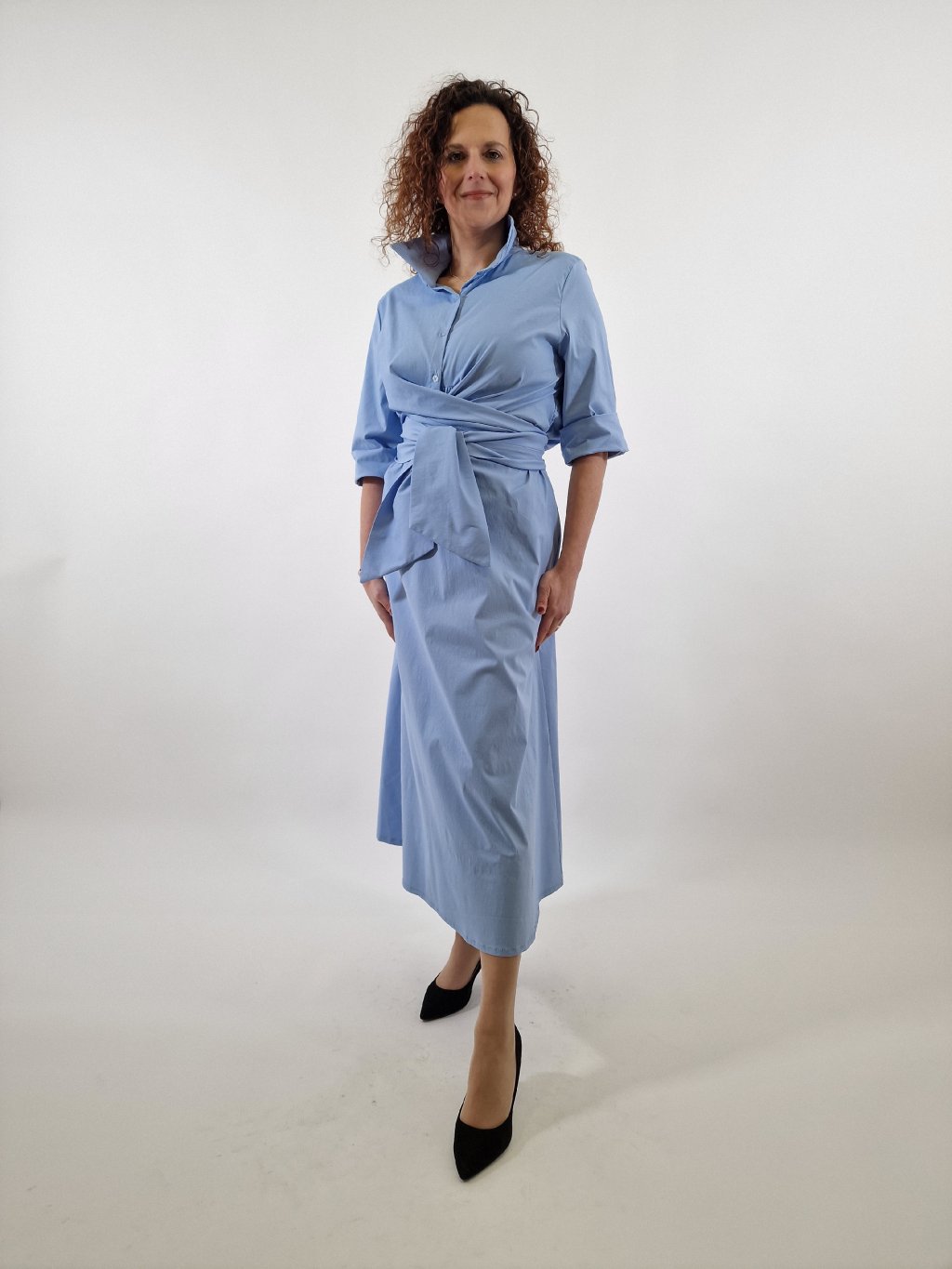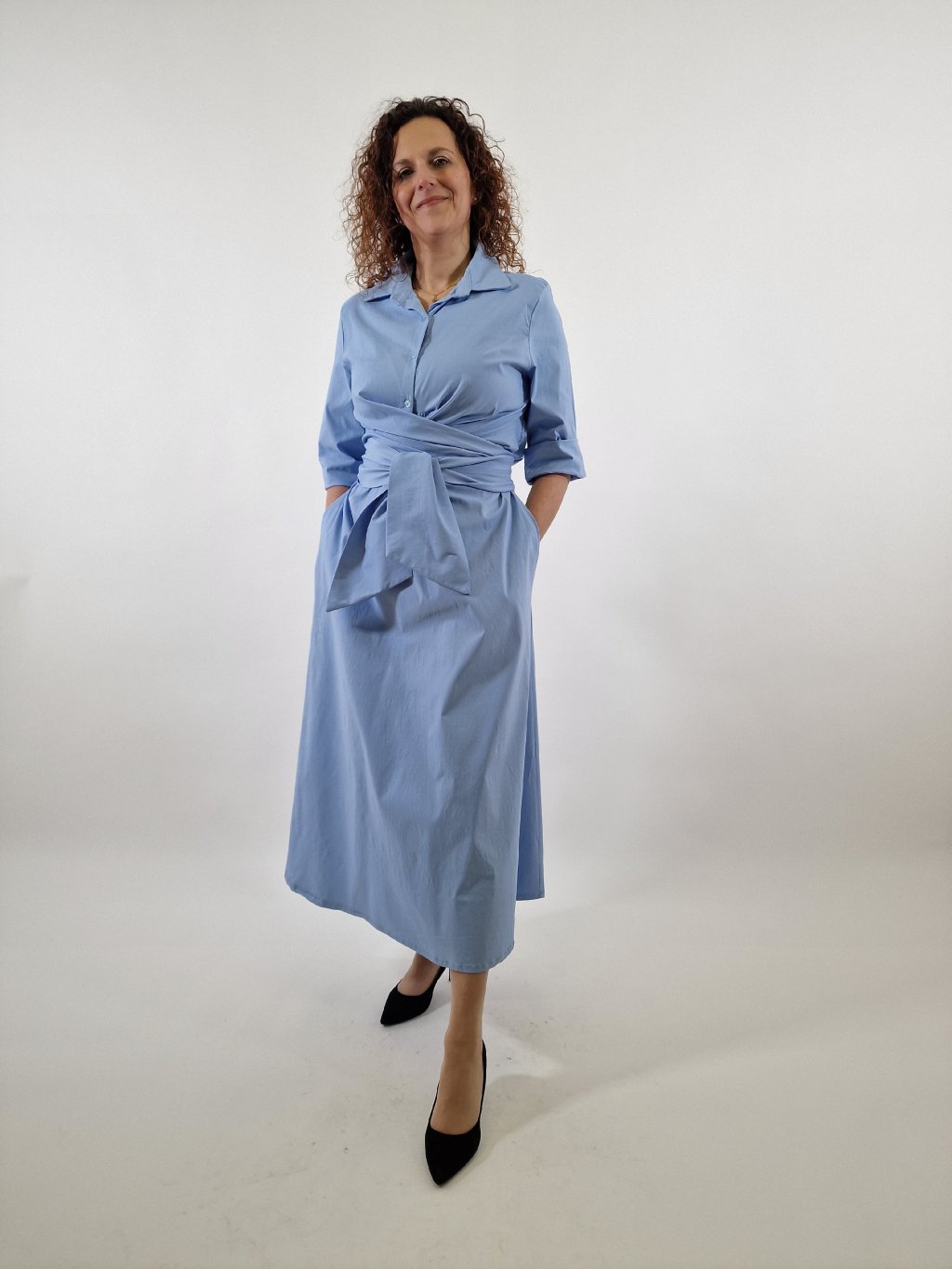 Krásné dámské zavinovací šaty v dlouhé délce, které jsou díky strečovému materiálu maximálně pohodlné. Horní díl má košilový střih, sukně je áčková a lichotivá pro postavu. Vázání v pase umožňuje přizpůsobení podle potřeby. Ideální na běžné nošení i slavnostnější příležitosti.