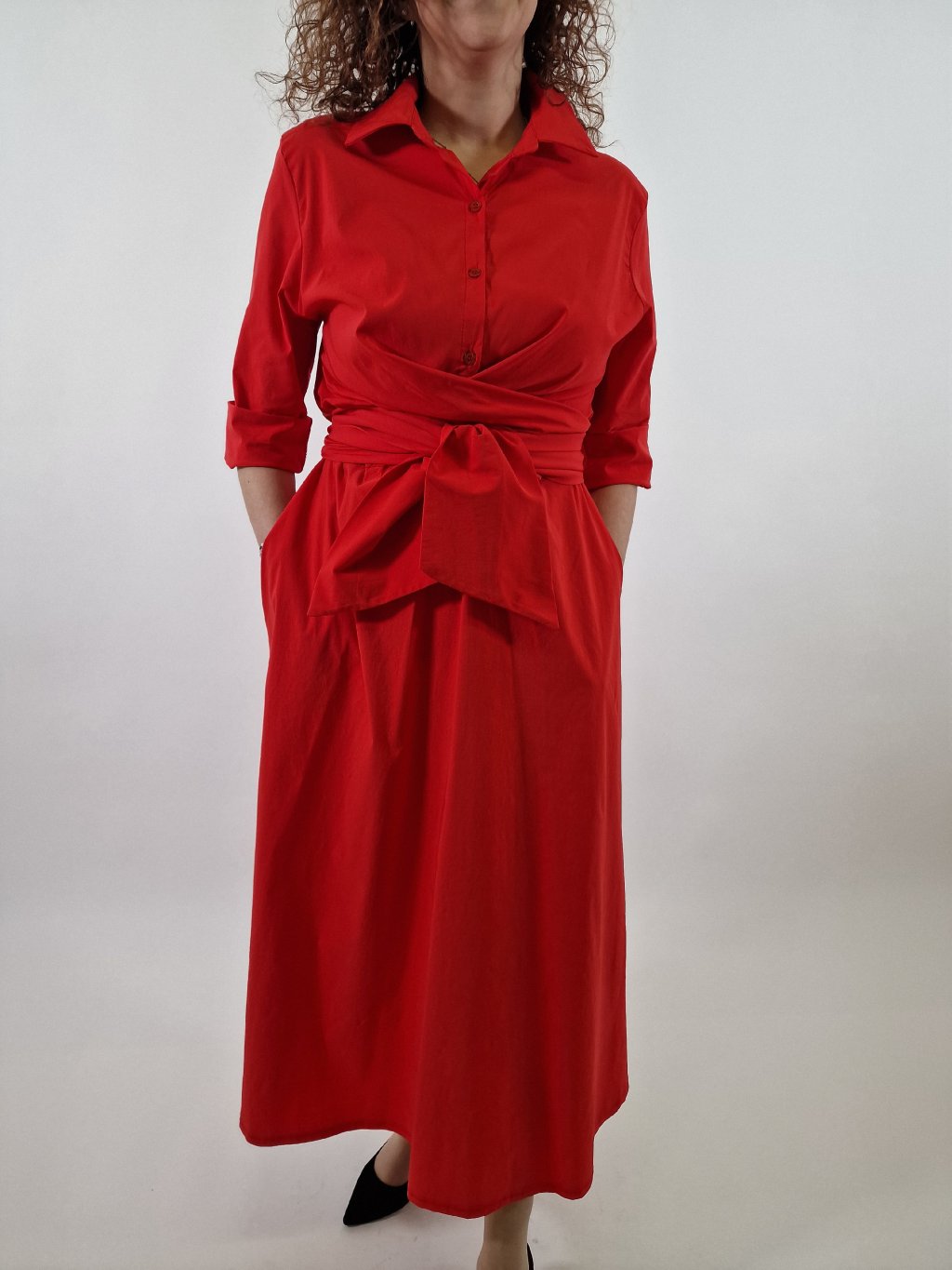 Krásné dámské zavinovací šaty v dlouhé délce, které jsou díky strečovému materiálu maximálně pohodlné. Horní díl má košilový střih, sukně je áčková a lichotivá pro postavu. Vázání v pase umožňuje přizpůsobení podle potřeby. Ideální na běžné nošení i slavnostnější příležitosti.