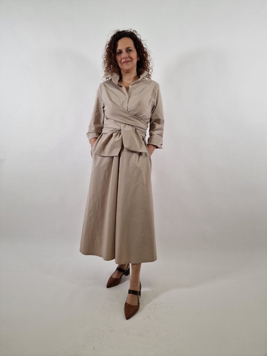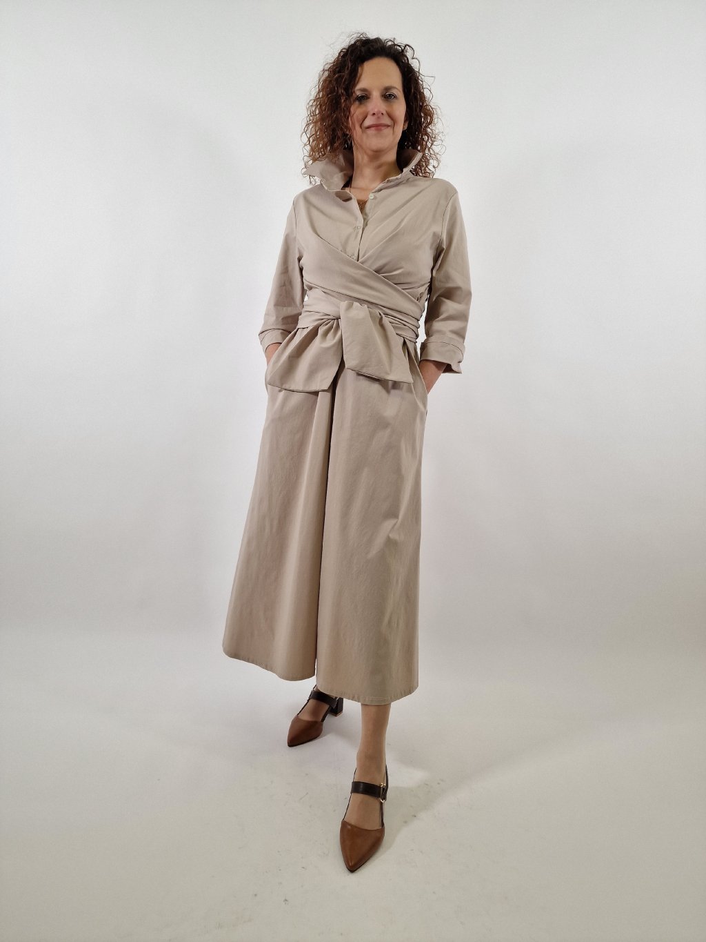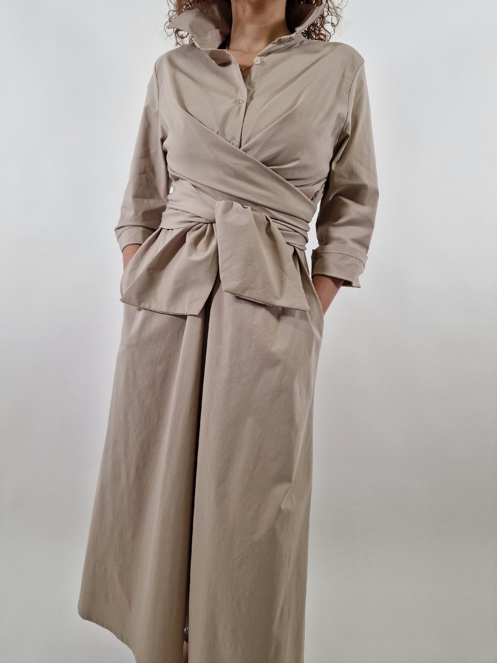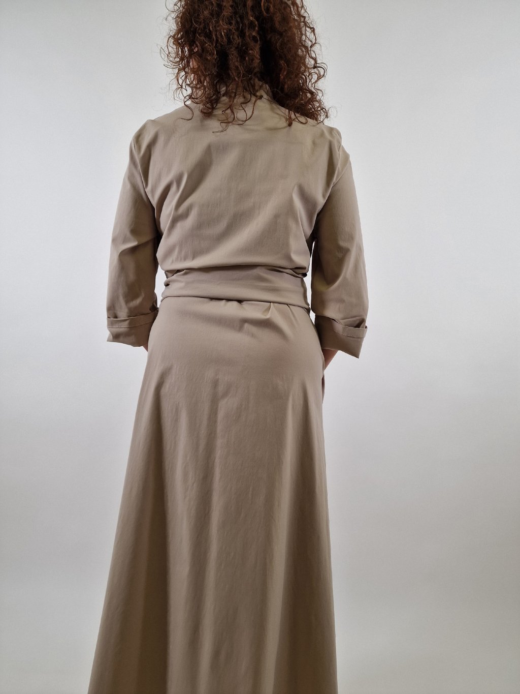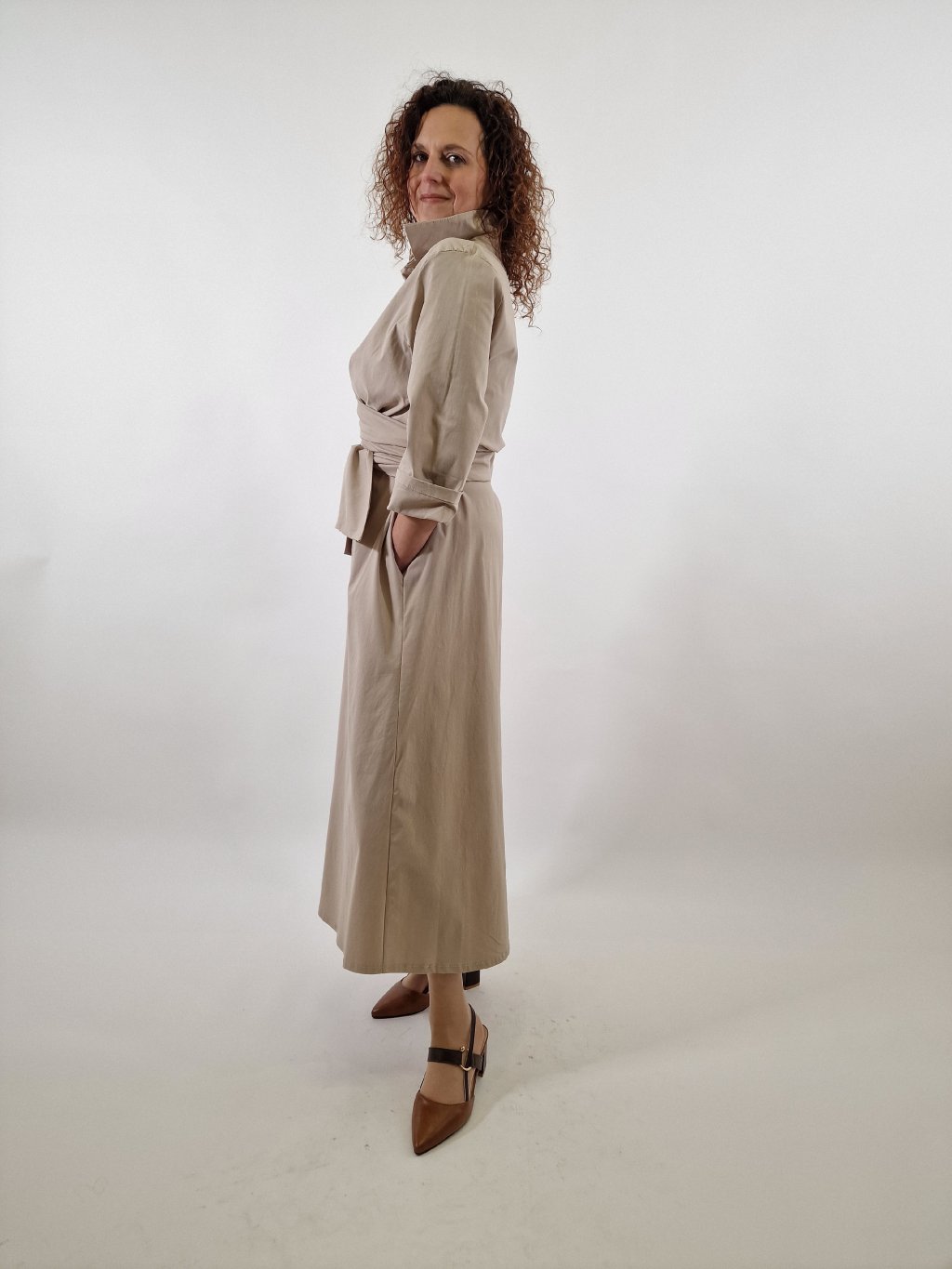 Krásné dámské zavinovací šaty v dlouhé délce, které jsou díky strečovému materiálu maximálně pohodlné. Horní díl má košilový střih, sukně je áčková a lichotivá pro postavu. Vázání v pase umožňuje přizpůsobení podle potřeby. Ideální na běžné nošení i slavnostnější příležitosti.