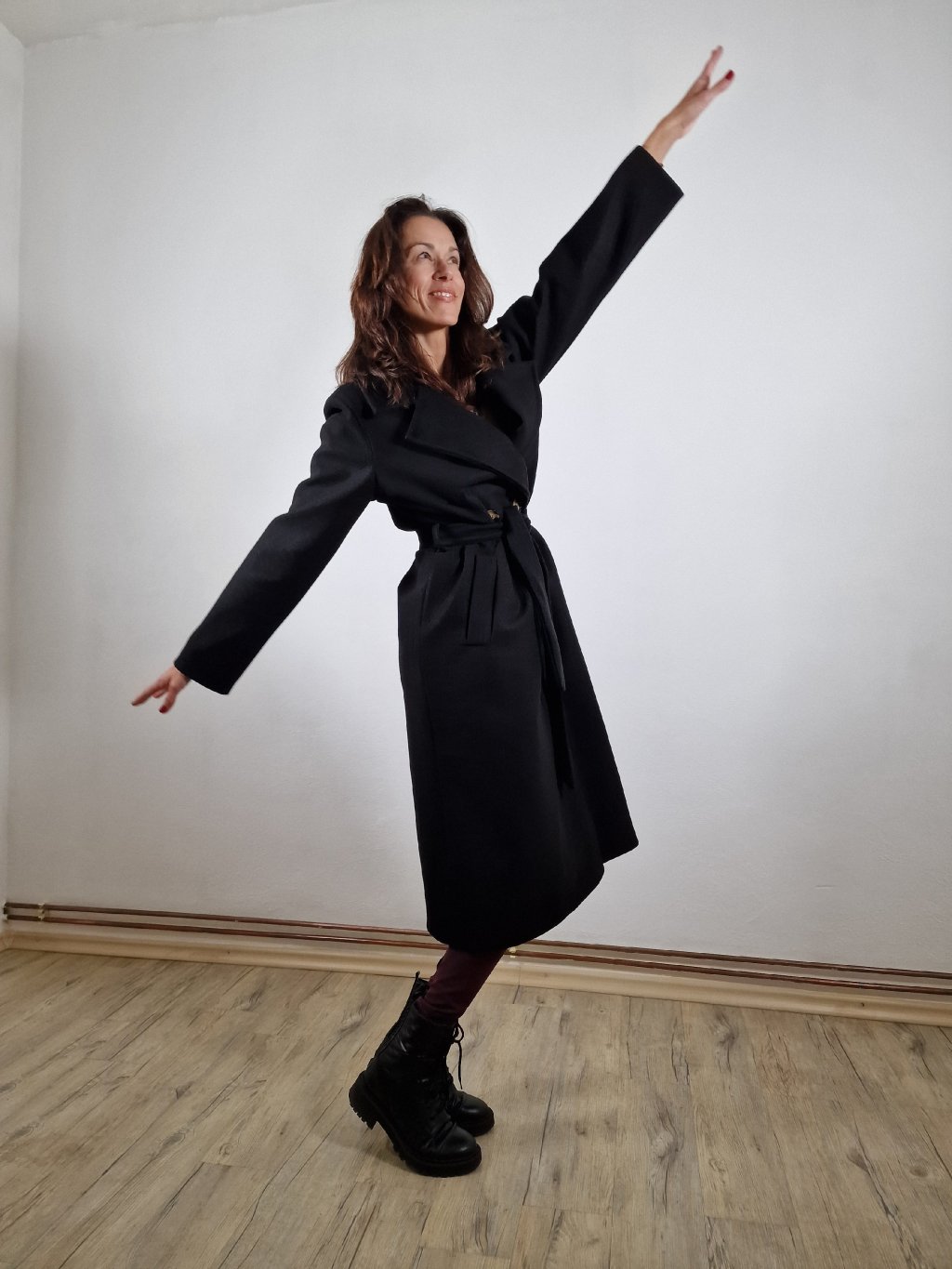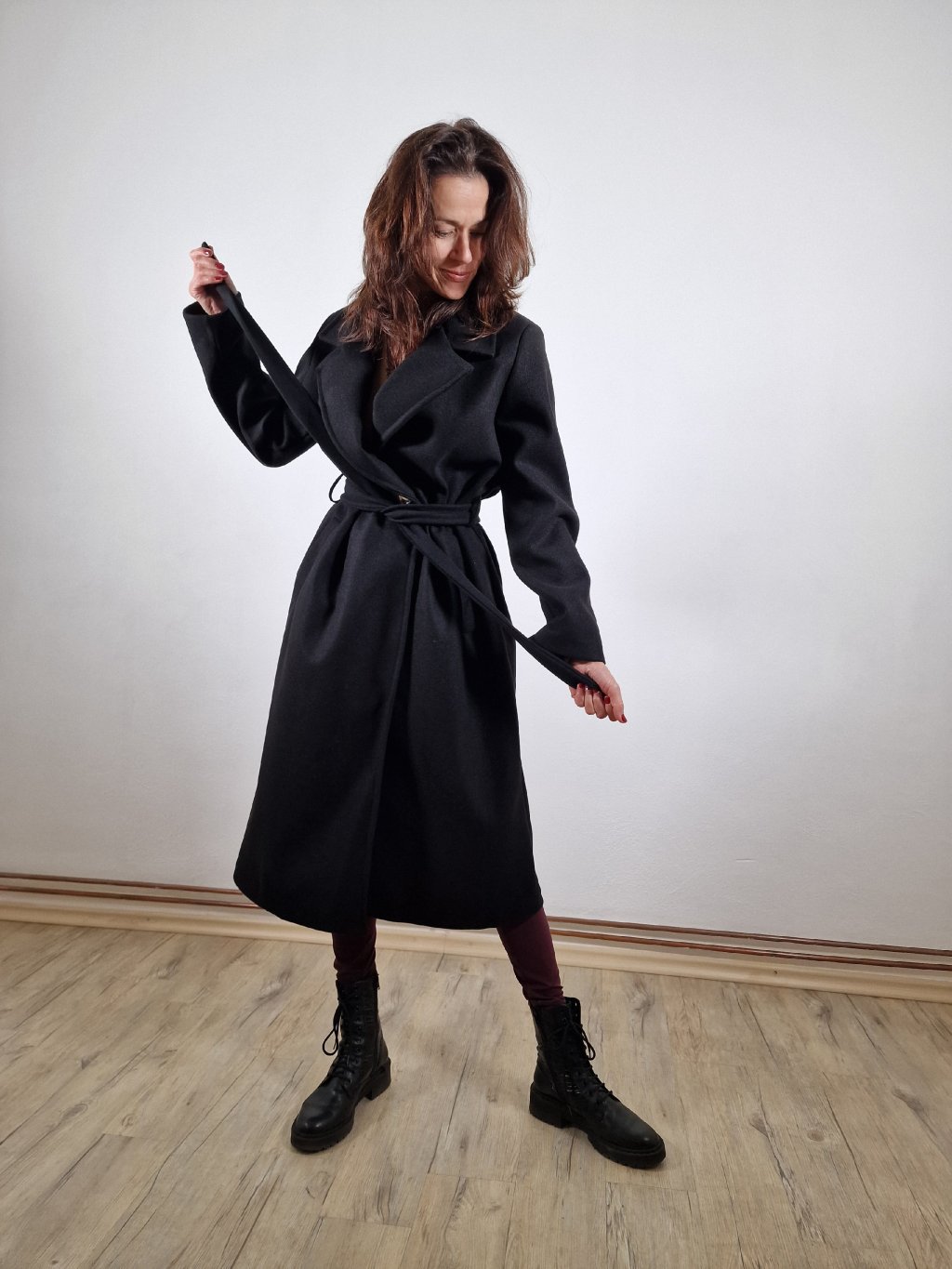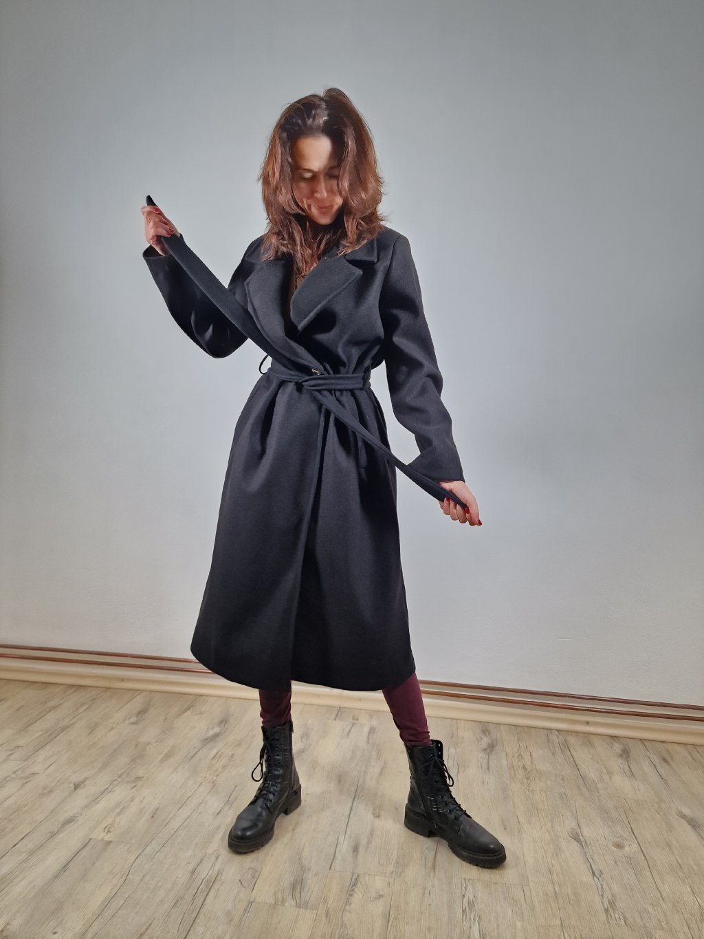 Dámský dlouhý teplý kabát FH vyniká elegantním střihem a hřejivým materiálem. Kabát má podšívku, zapínání na knoflíky, pásek pro zvýraznění pasu a praktické kapsy. Díky dlouhé délce 122 cm a kvalitní směsi polyesteru a vlny poskytuje výbornou ochranu před chladem. Univerzální velikost 38–42 skvěle padne většině postav a zaručuje pohodlí i styl během celého dne.