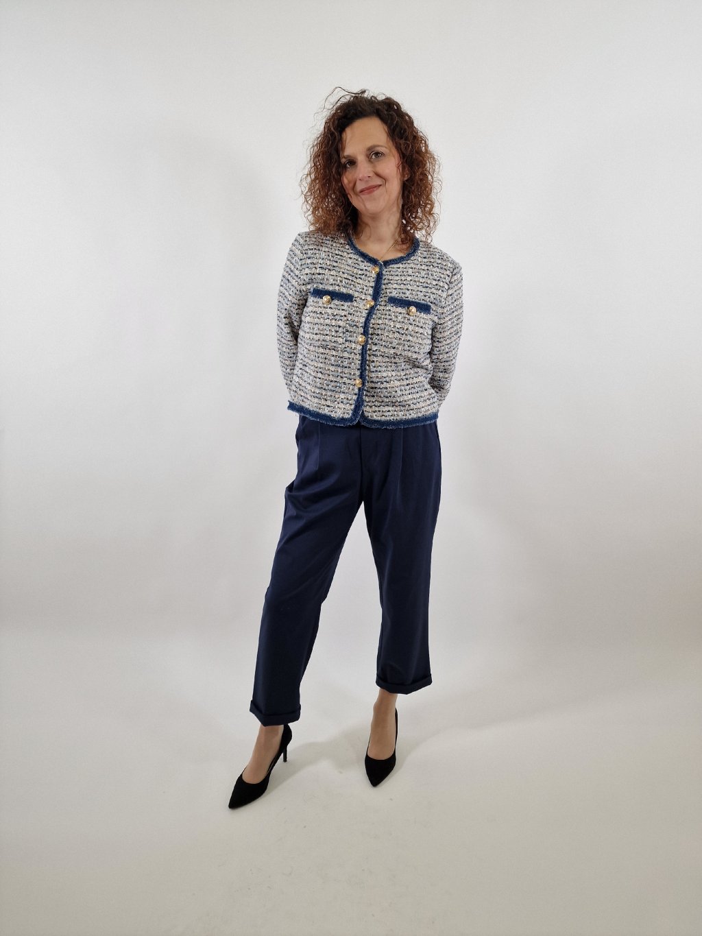 Elegantní dámské kostýmkové sako vhodné do práce i na společenské příležitosti. Blejzr je podšitý, má praktické kapsy a krásně drží tvar. Skvěle doplní kalhoty, sukni i šaty.