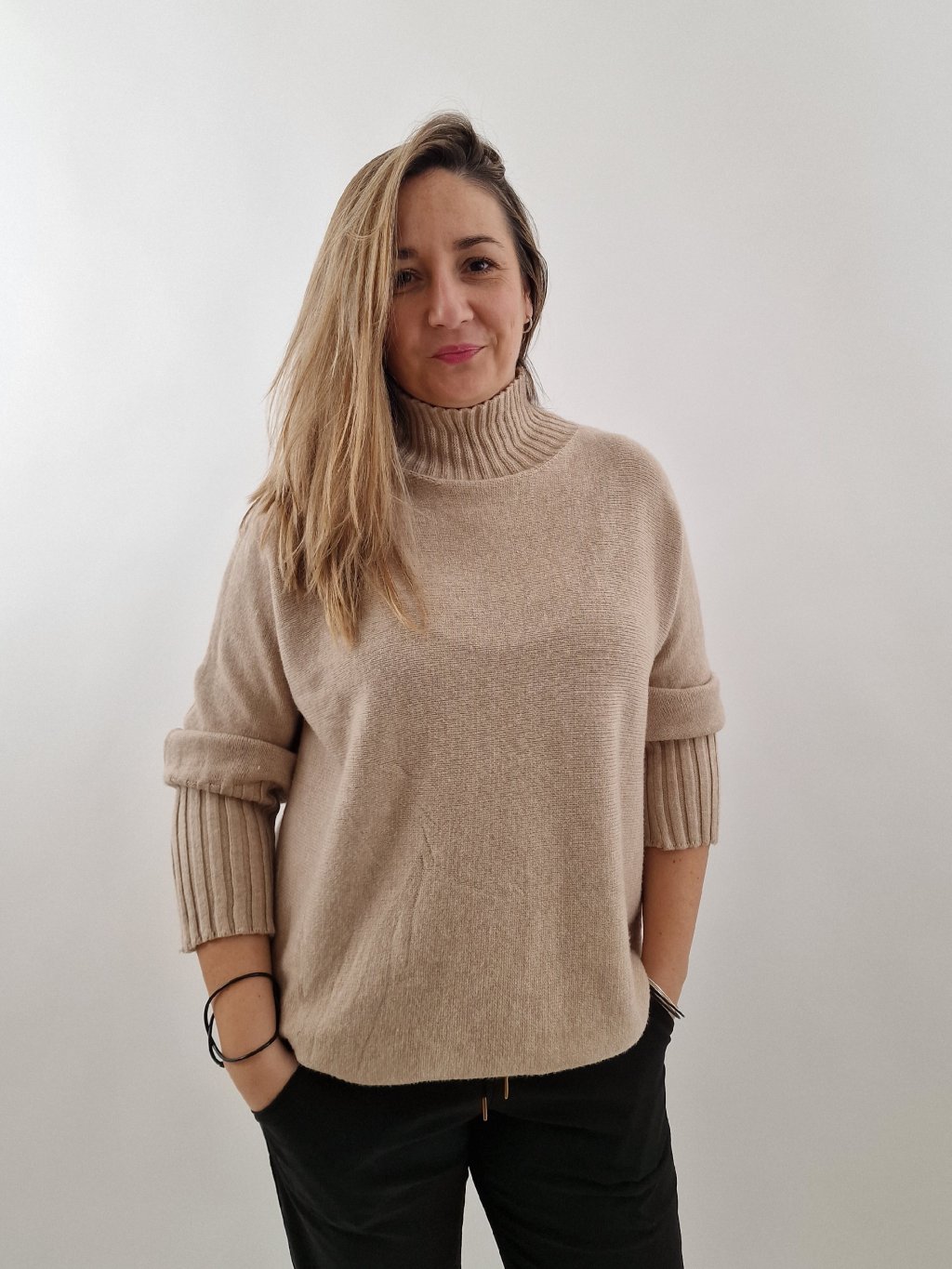 Lehký dámský rolák, který je ideální pro celoroční nošení. Příjemný materiál se skvěle přizpůsobí postavě a rolák dodává elegantní vzhled.