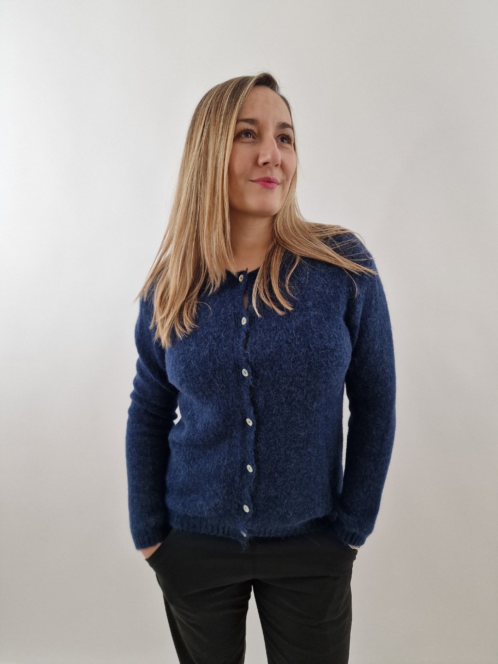 Krásný propínací svetr s podílem baby alpaky, která dodává maximální jemnost a hřejivost. Univerzální střih sedí velikostem 38–42, skvěle se kombinuje k běžným outfitům i elegantnějším kouskům.