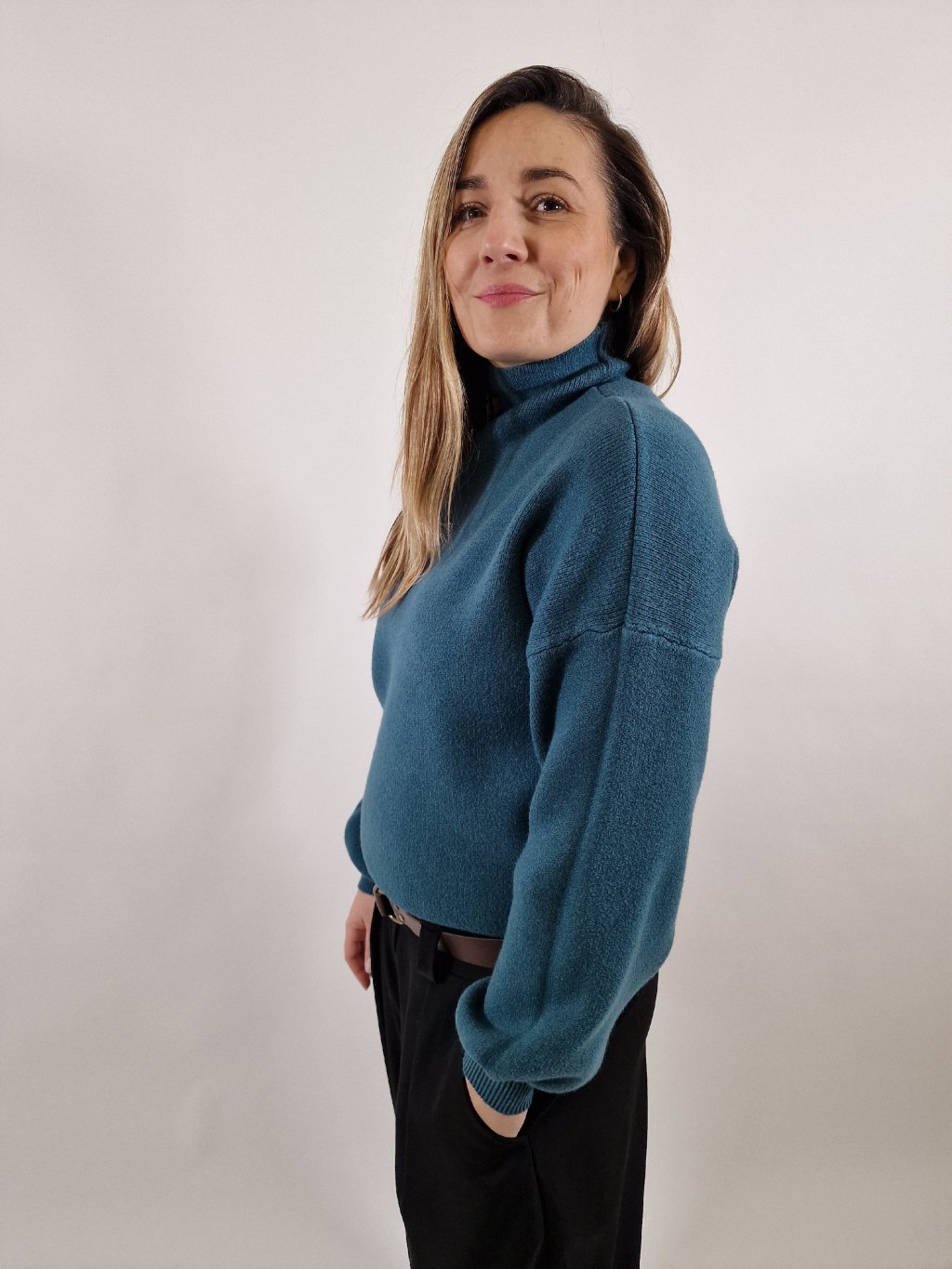 Stylový dámský svetr se stojáčkem z velmi příjemného materiálu s vysokým podílem viskózy. Pohodlný střih se snadno přizpůsobí postavě a je ideální na každodenní nošení do práce i na volný čas. Skvěle se kombinuje s kalhotami i sukní.