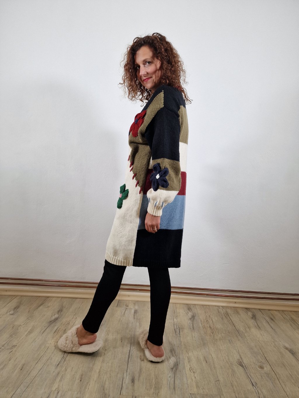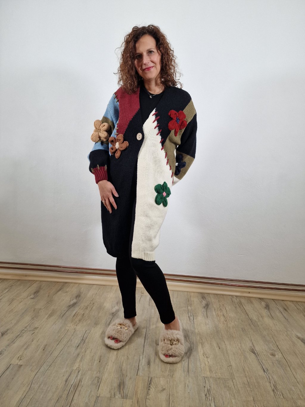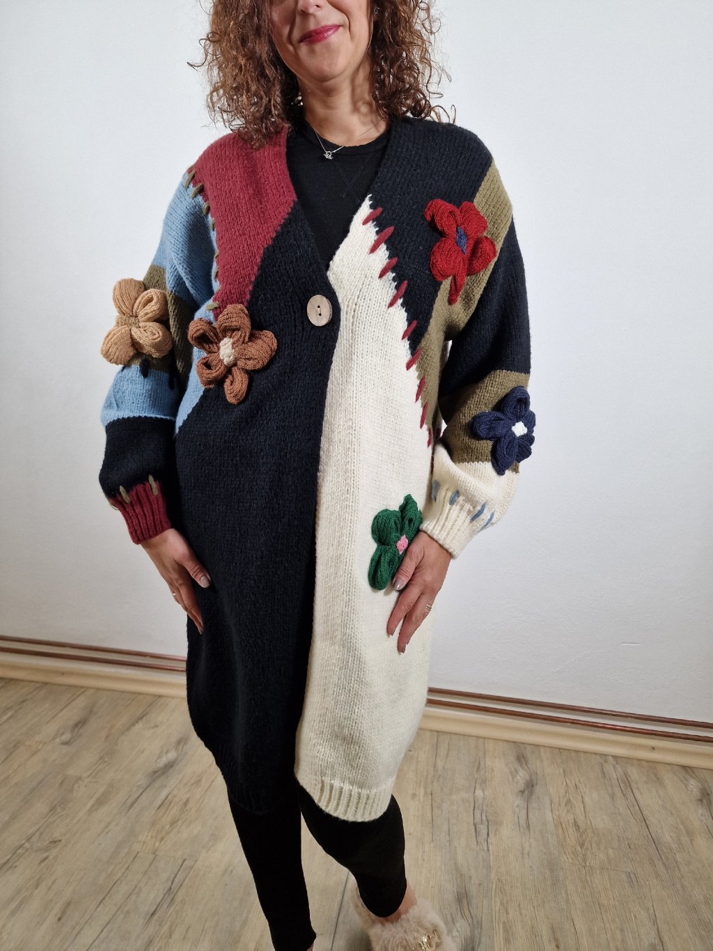 Teplý svetrový kabátek Italy je ideální volbou pro elegantní i pohodlné outfity. Skvěle se kombinuje s kalhotami, sukní i šaty pro nadčasový vzhled během podzimu a zimy.