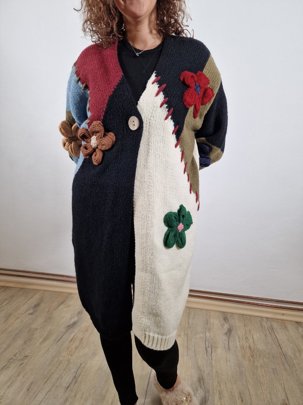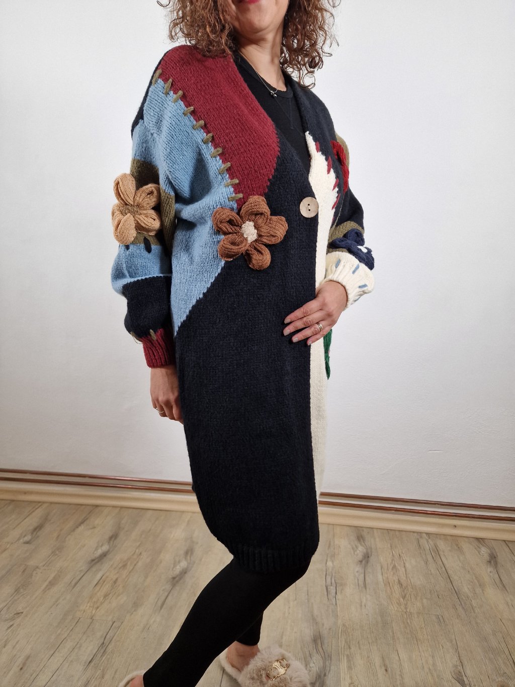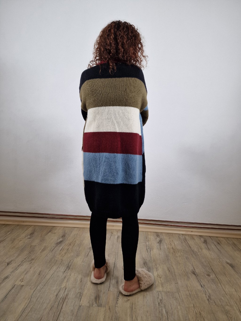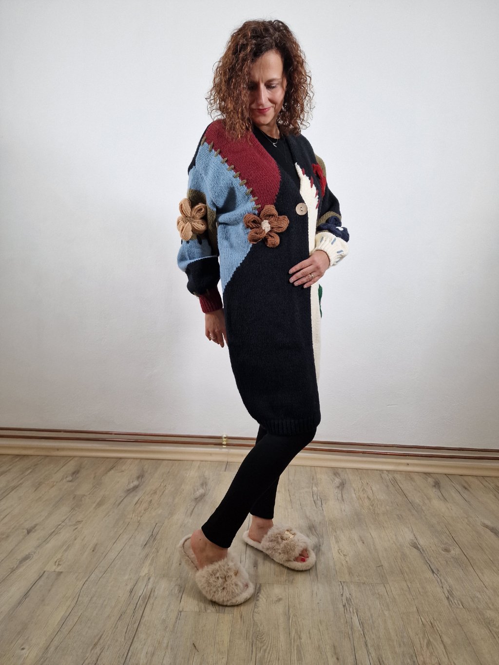 Teplý svetrový kabátek Italy je ideální volbou pro elegantní i pohodlné outfity. Skvěle se kombinuje s kalhotami, sukní i šaty pro nadčasový vzhled během podzimu a zimy.