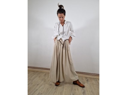 Dámské maxi široké kalhoty Paefowl vynikají lehkostí, elegancí a pohodlím. Zadní část pasu je v gumě pro flexibilní nošení. Ideální pro jarní a letní dny.