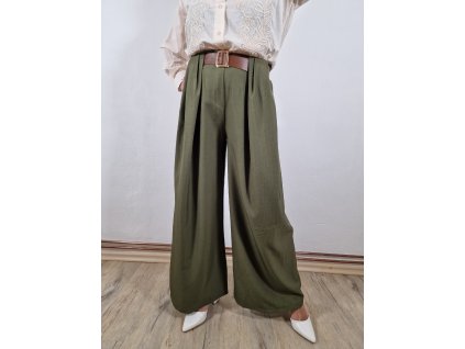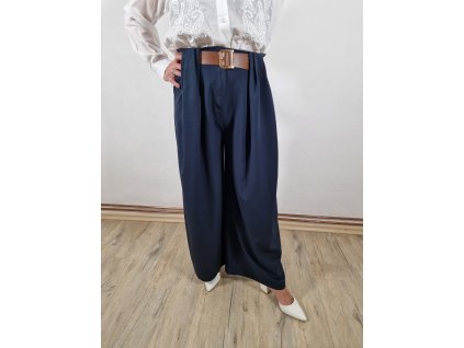 Dámské široké elegantní kalhoty Peafowl spojují styl a pohodlí. Lehký splývavý materiál, pásek, kapsy a odepínací kytička tvoří dokonalý outfit pro každou příležitost.